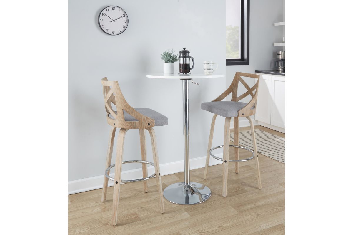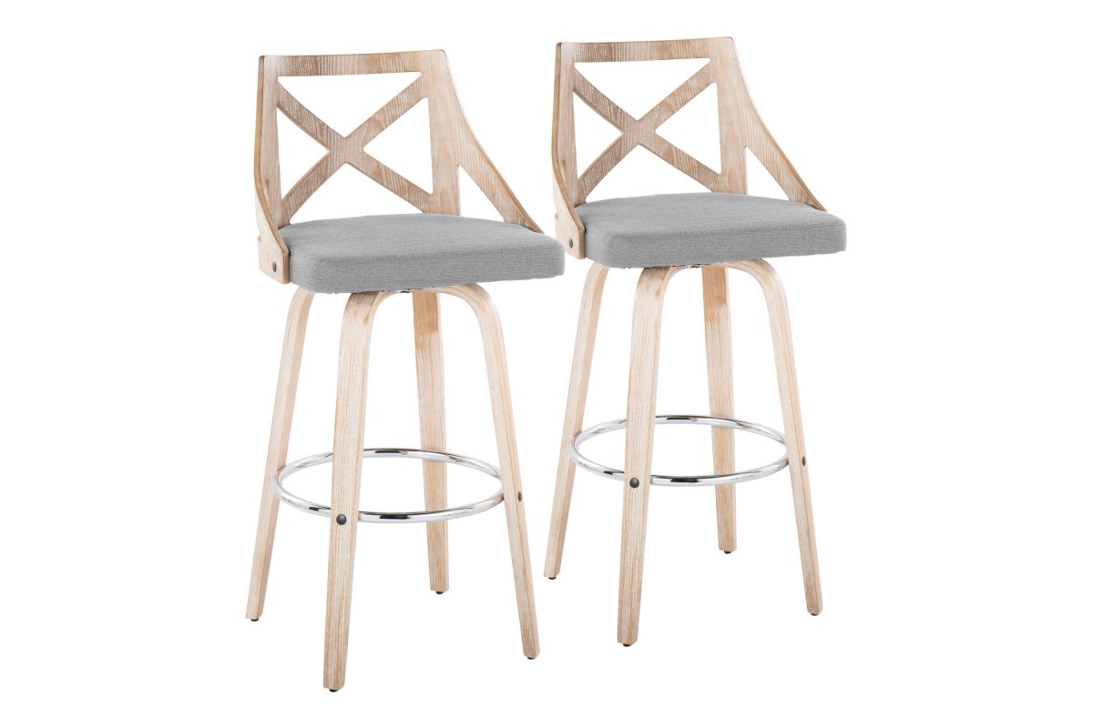 Spruce up your dining area with the Charlotte Fixed-Height Barstool by LumiSource. With elegant styling, the backrest shows off an X-shaped accent. Featuring bent wood, fabric upholstery, and a swivel seat, the Charlotte Barstool beautifully straddles the line between traditional and farmhouse styles.
