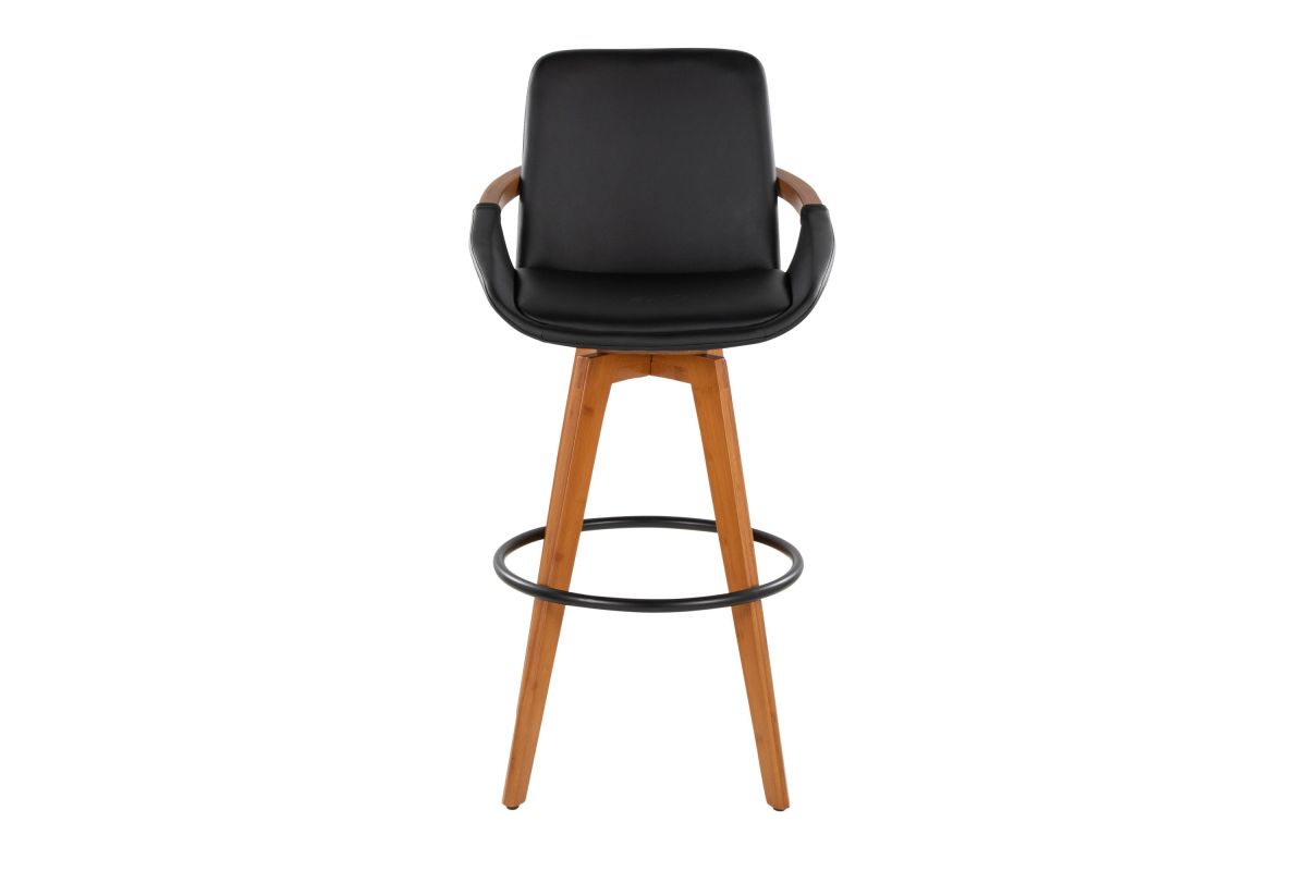 Mid-Century inspired, the Cosmo Fixed-Height Bar Stool by LumiSource combines style and comfort! A faux leather seat is accented by stylish walnut bamboo armrest and legs, with smooth swivel capability. Available in a variety of color combinations, choose the one that fits your space the best.