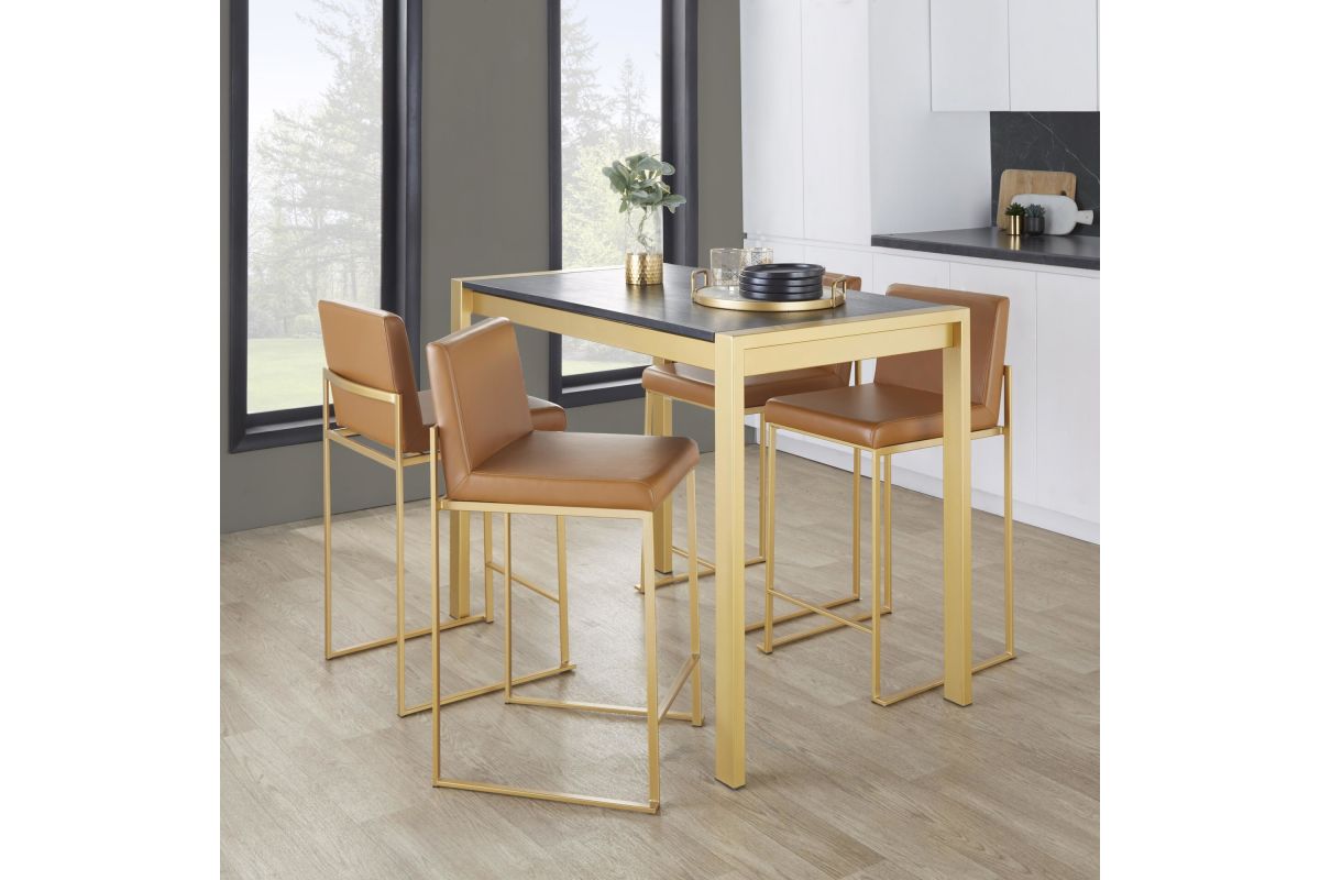 Contemporary elegance at its finest, the Fuji High Back Counter Stool by LumiSource features an extra-wide (and extra comfortable) upholstered seat, a high padded backrest, and a stylish metal frame. The perfect contemporary counter stool, the Fuji is available in a variety of sleek color combinations, choose the look that best fits your dining space.