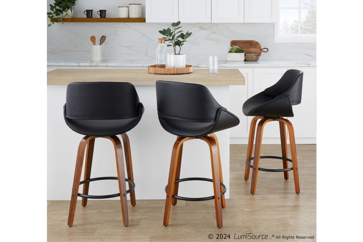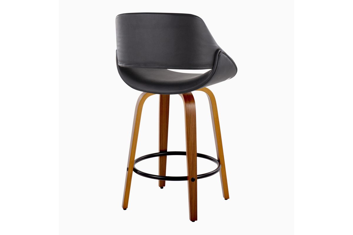 The wide and welcoming seat of the LumiSource Fabrico Counter Stool beckons one to sit and relax. A curved back and contoured upholstered seat is accented by flared wood swivel legs that add to the stylish yet comfortable design. Available in a variety of upholstery colors, choose the one that suits your space best.