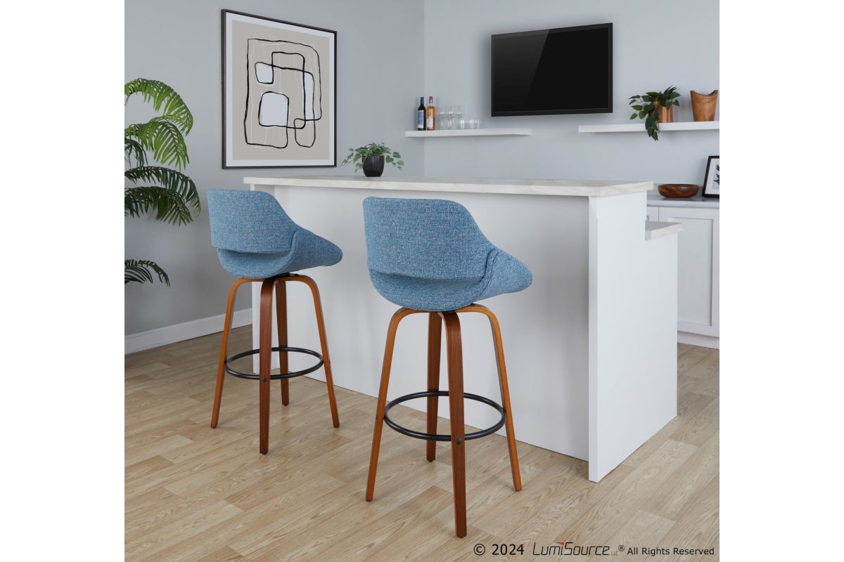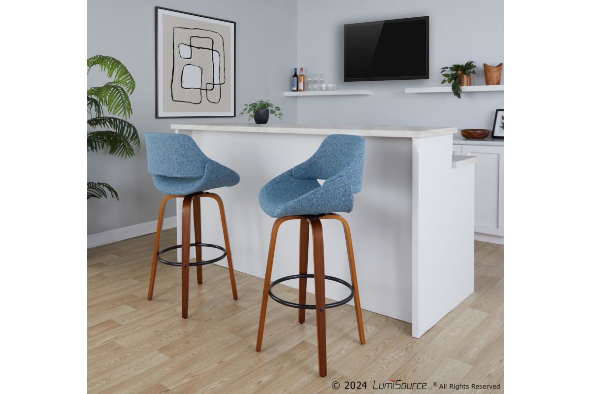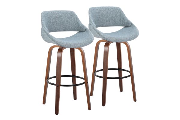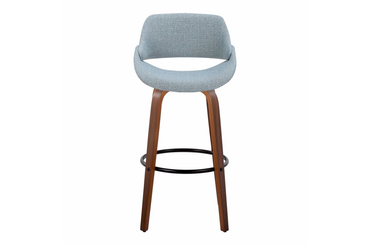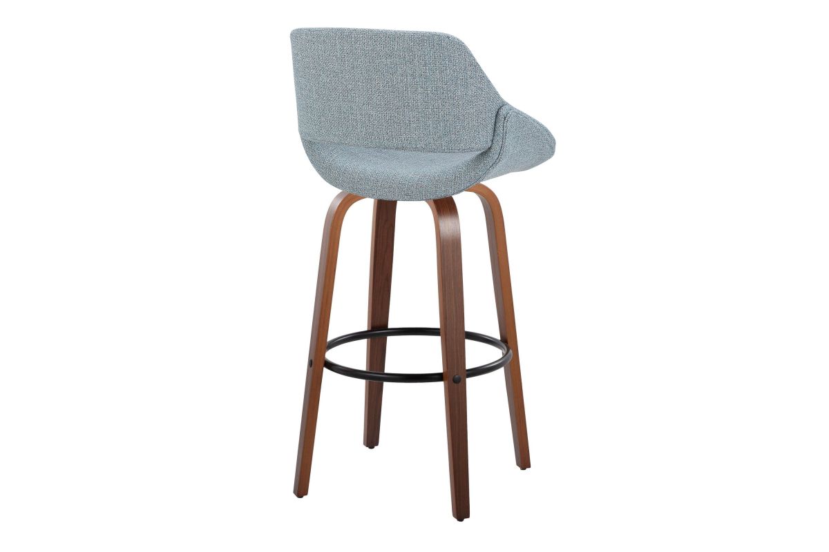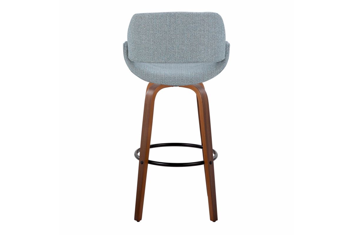 The wide and welcoming seat of the LumiSource Fabrico Barstool beckons one to sit and relax. A curved back and contoured upholstered seat is accented by flared wood swivel legs that add to the stylish yet comfortable design. Available in a variety of upholstery colors, choose the one that suits your space best.