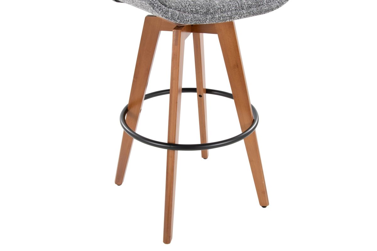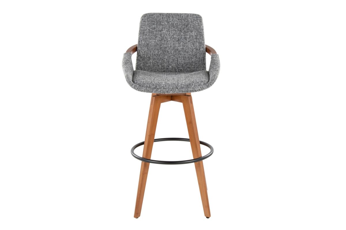 Mid-Century inspired, the Cosmo Fixed-Height Barstool by LumiSource combines style and comfort! An upholstered seat is accented by stylish walnut bamboo armrest and legs, with smooth swivel capability. Available in a variety of color combinations, choose the one that fits your space the best.