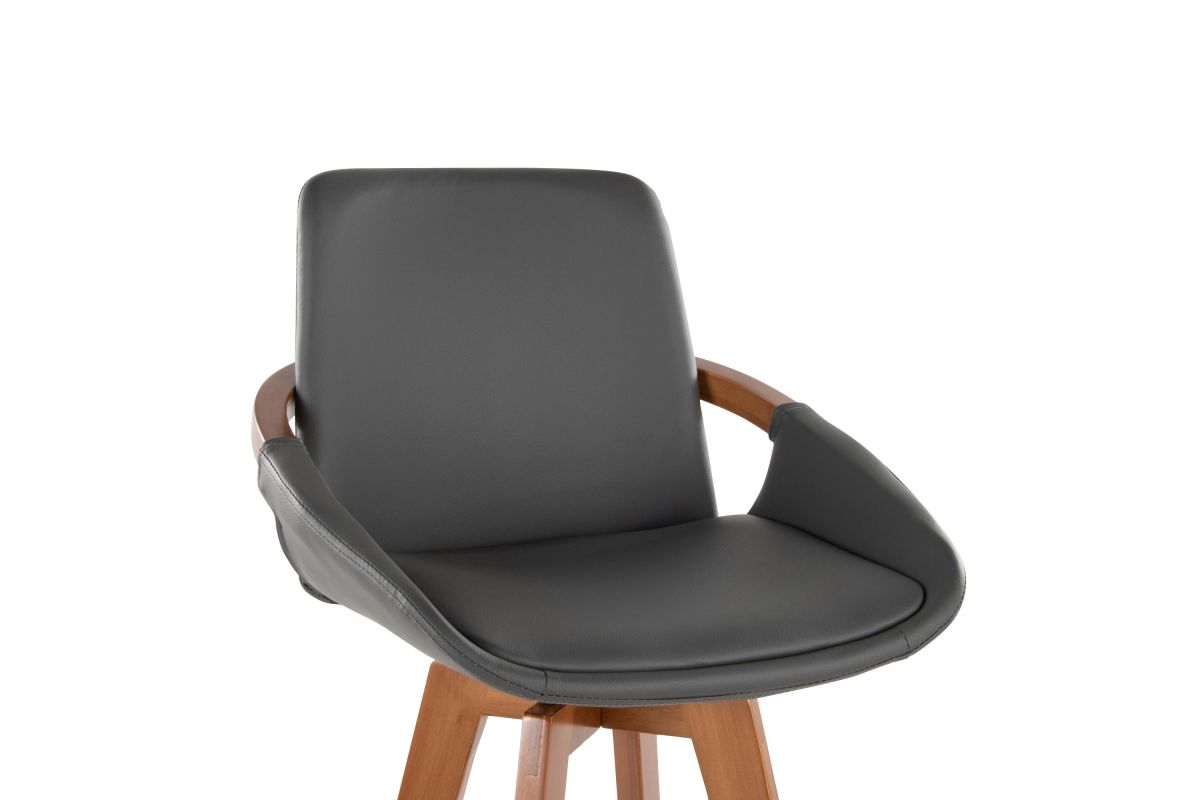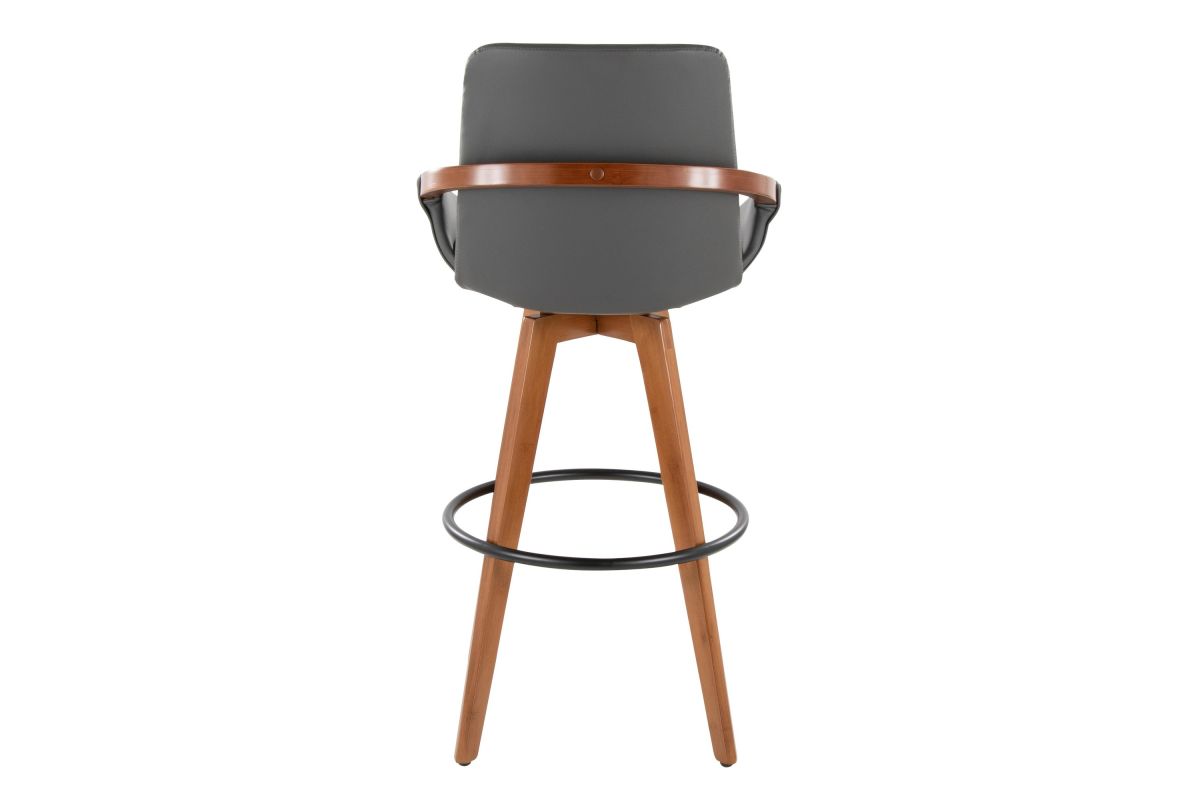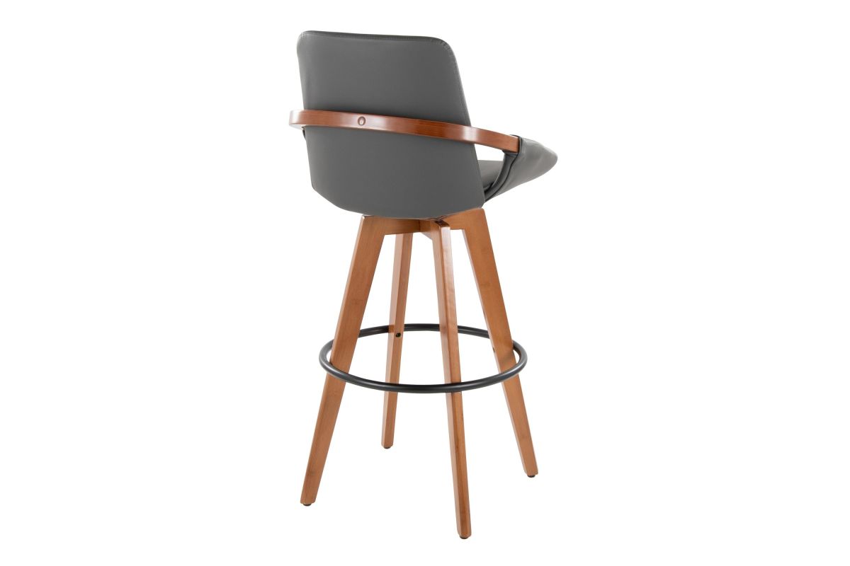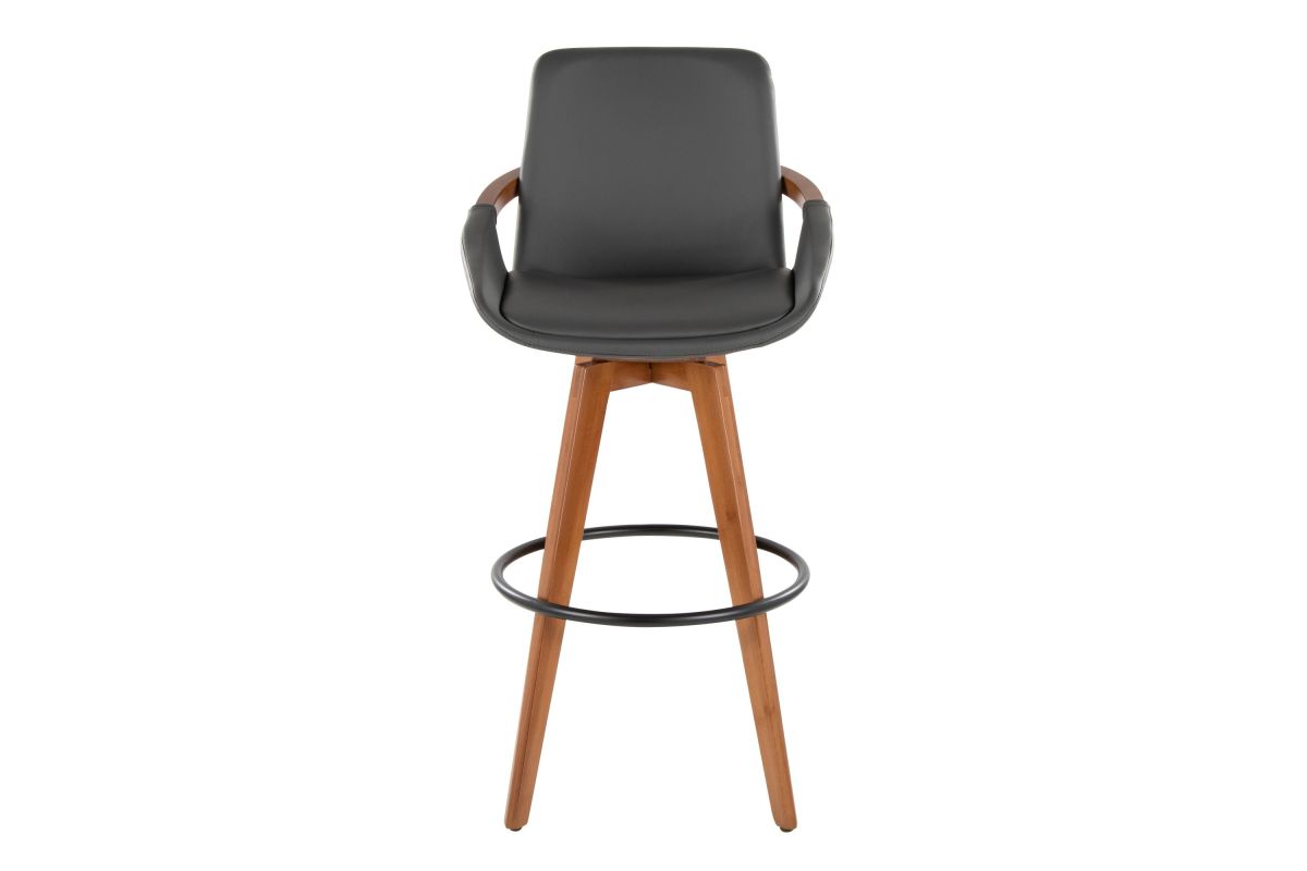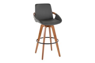 Mid-Century inspired, the Cosmo Fixed-Height Barstool by LumiSource combines style and comfort! An upholstered seat is accented by stylish walnut bamboo armrest and legs, with smooth swivel capability. Available in a variety of color combinations, choose the one that fits your space the best.