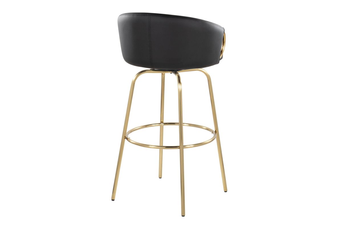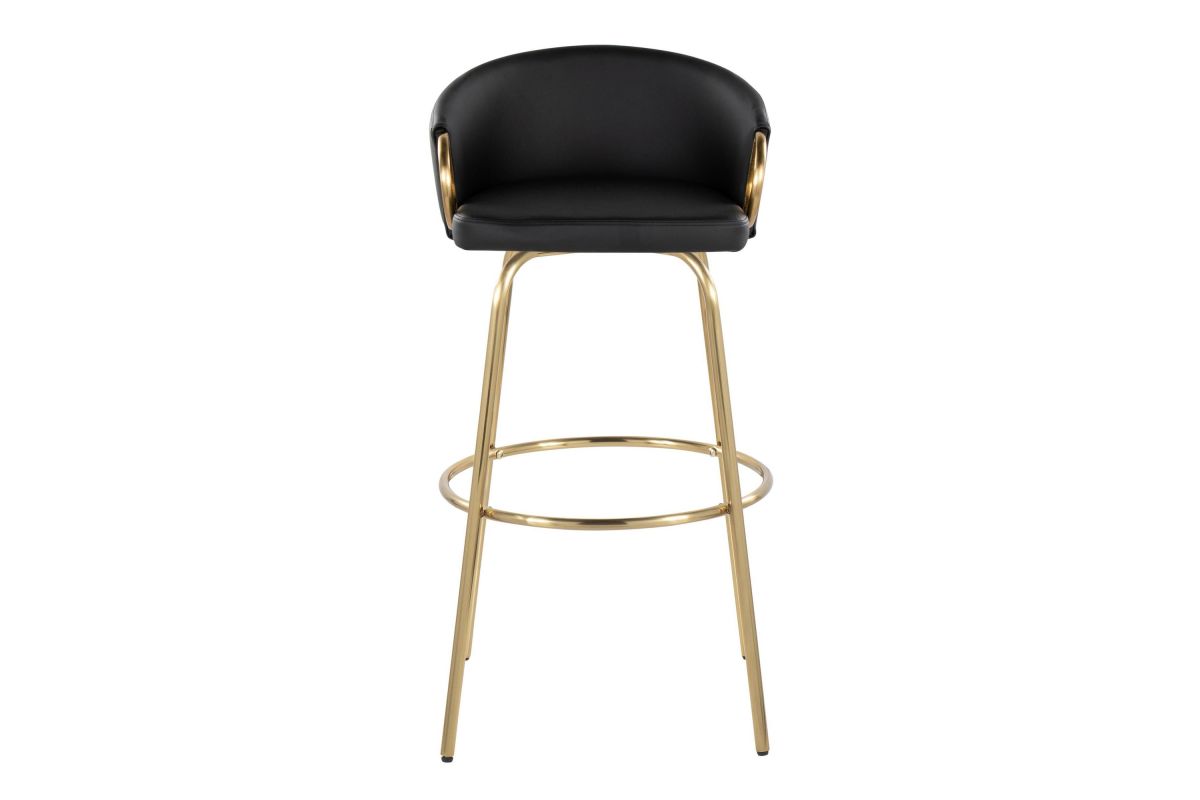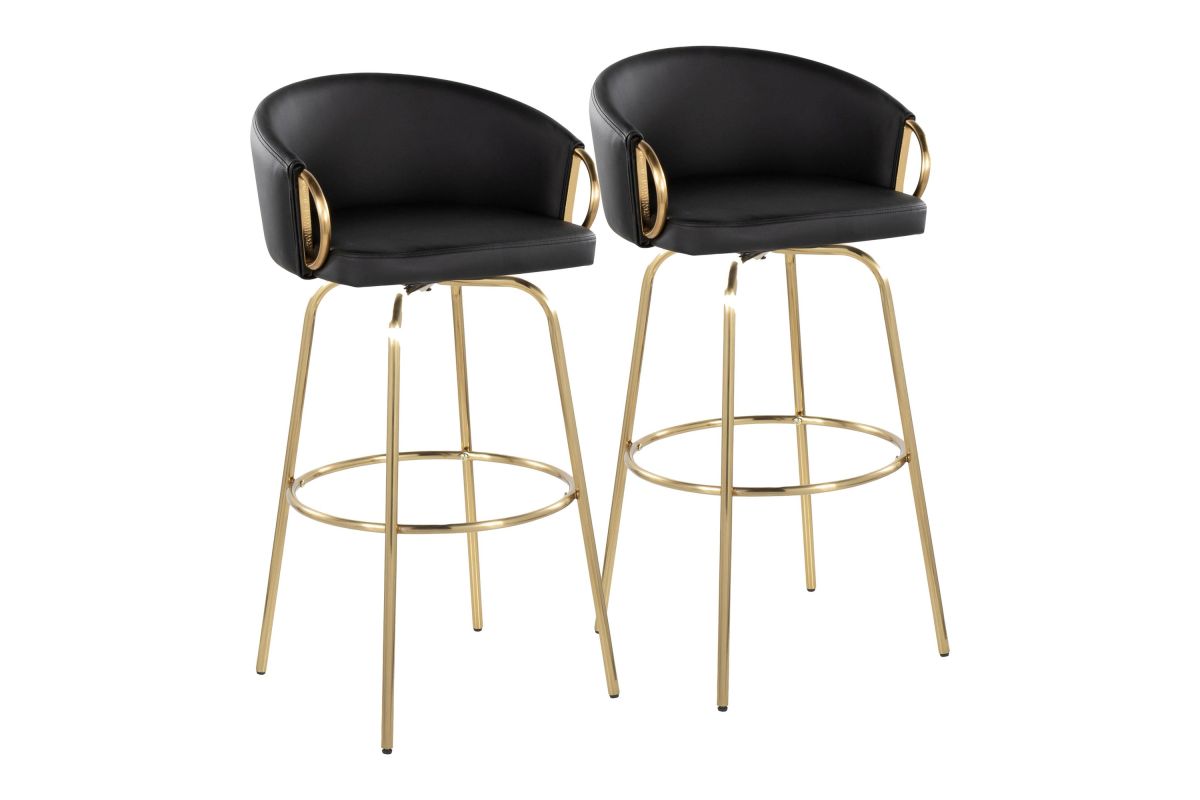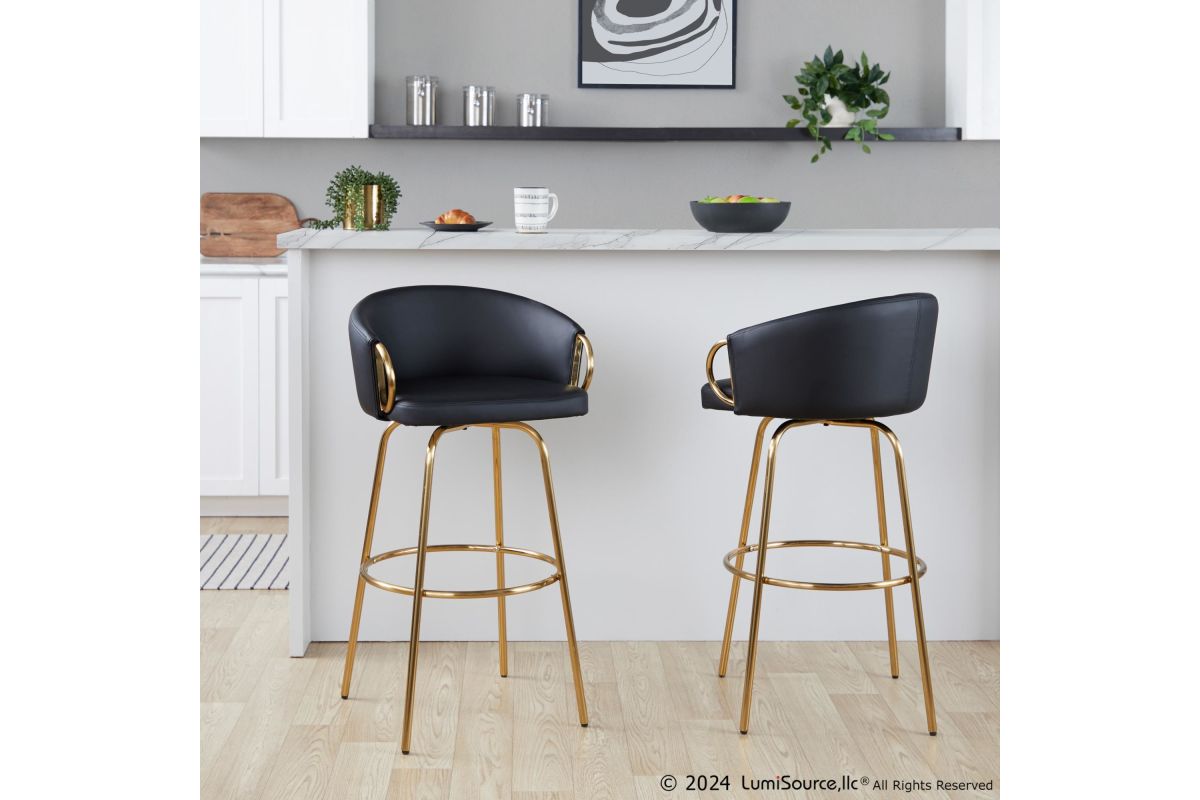 Chic modern style shines bright with the unique design of the Claire Fixed-Height Barstool by LumiSource. With a rounded and low backrest, sleek metal armrests and frame, it's the perfect piece for your contemporary bar area. The Claire Barstool has smooth swivel capability with plush upholstery. Available in various bold colors.