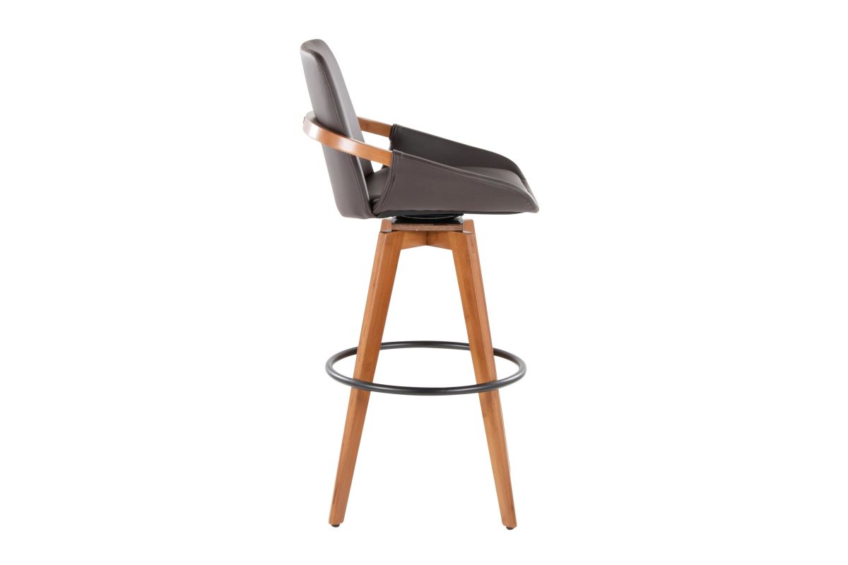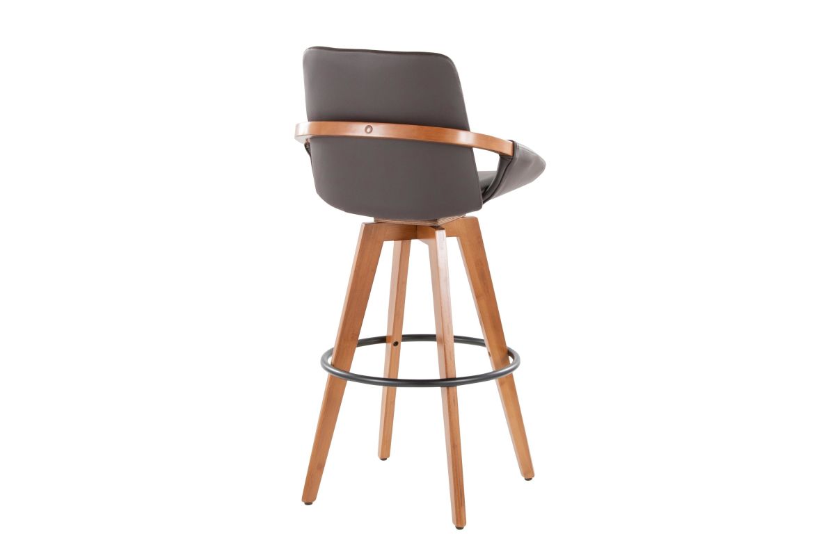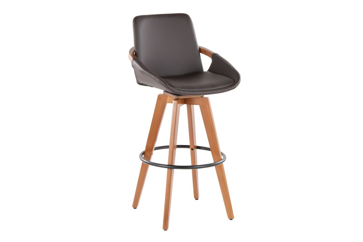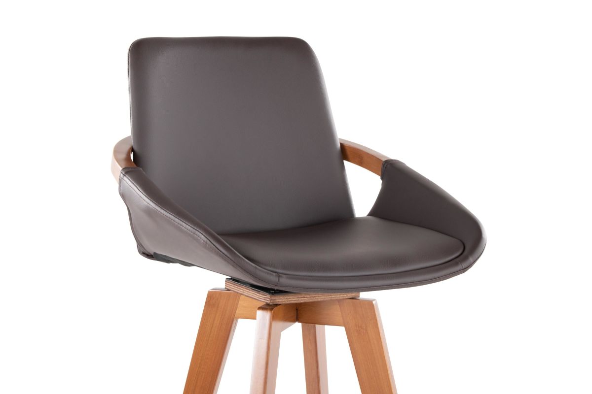 Mid-Century inspired, the Cosmo Fixed-Height Barstool by LumiSource combines style and comfort! An upholstered seat is accented by stylish bamboo armrest and legs, with smooth swivel capability. Available in a variety of color combinations, choose the one that fits your space the best.