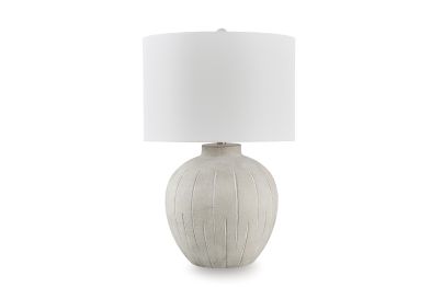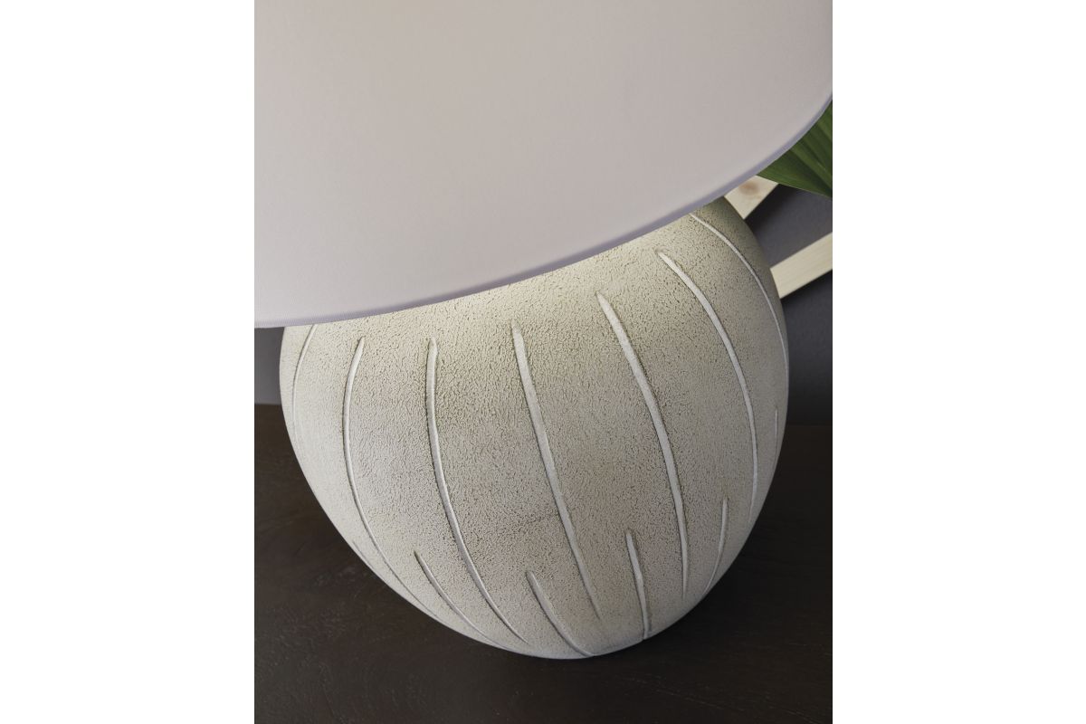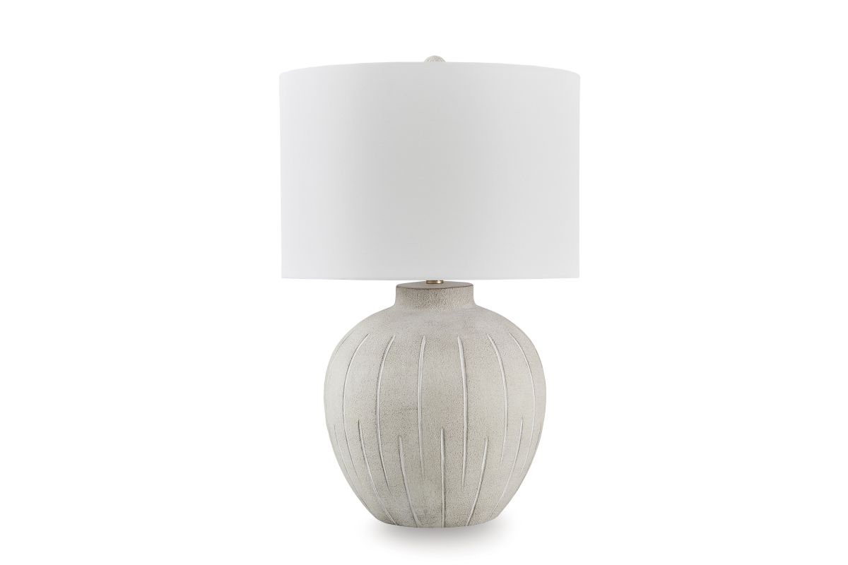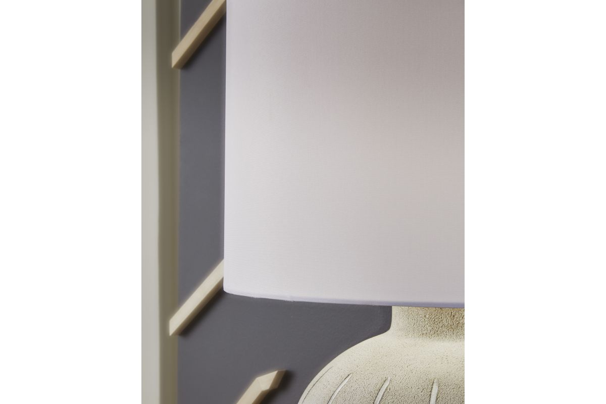This is one casually cool table lamp. Its textured, neutral-toned base exudes a relaxed, inviting vibe that fits seamlessly into a variety of decors. Ideal for adding that cozy touch, this lamp lightens the mood and brightens your living space, bedroom or office.
