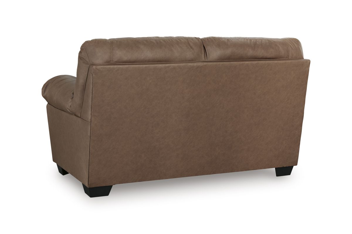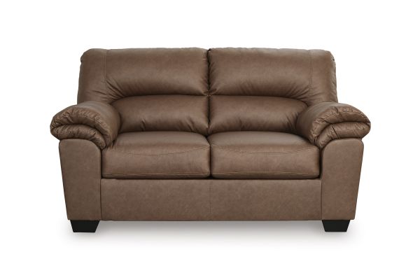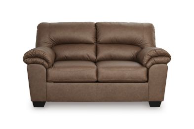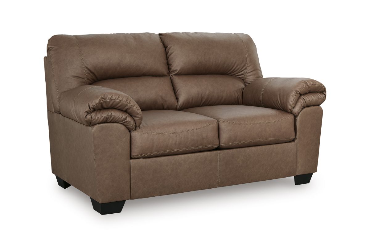 Modern comfort never looked so good. Sporting supremely soft yet durable cushions accented with high-fashion jumbo stitching, this stunning loveseat is the ultimate choice in comfortably cool, contemporary style. Its caramel-hued faux leather indulges with an upscale feel and wows like the real thing.