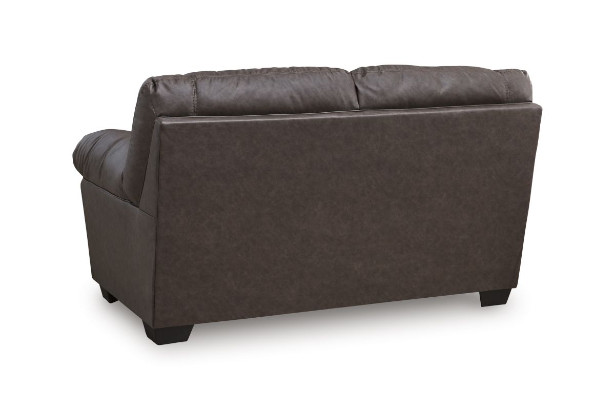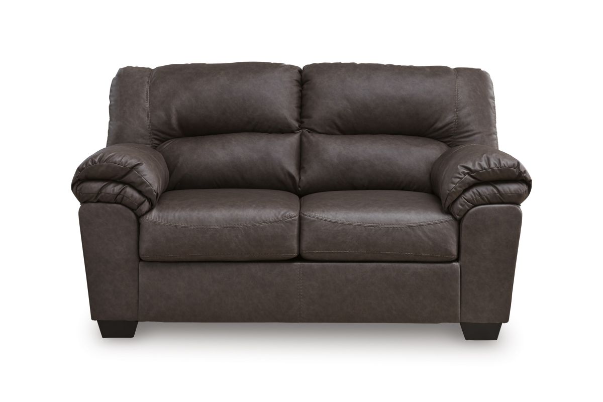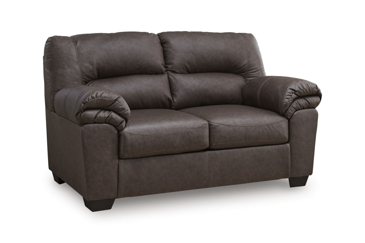 Modern comfort never looked so good. Sporting supremely soft yet durable cushions accented with high-fashion jumbo stitching, this stunning loveseat is the ultimate choice in comfortably cool, contemporary style. Its umber-hued faux leather indulges with an upscale feel and wows like the real thing.