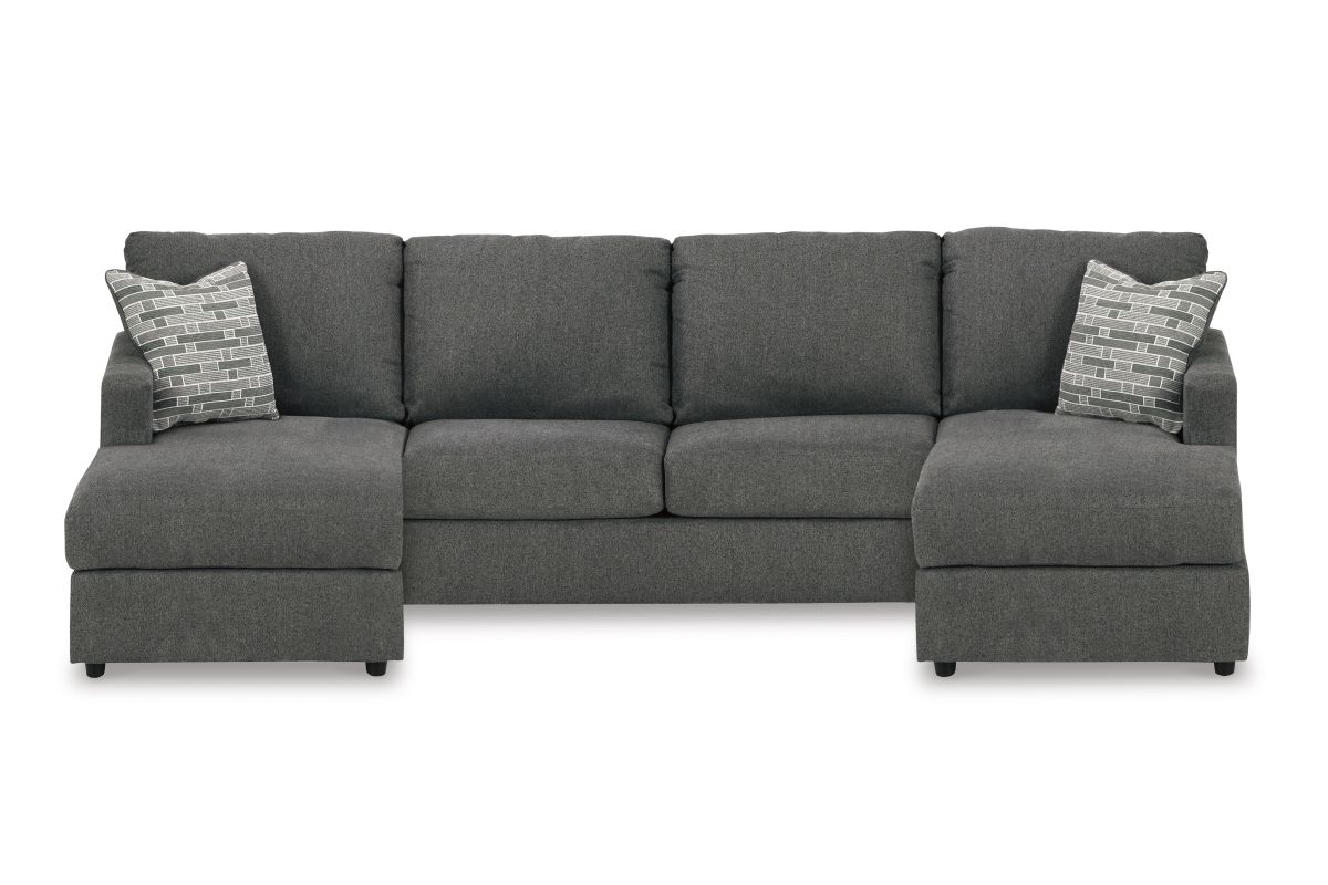 - Includes left-arm facing corner chaise, armless loveseat and right-arm facing sofa with corner wedge