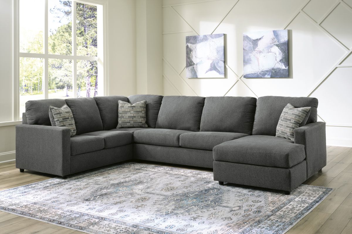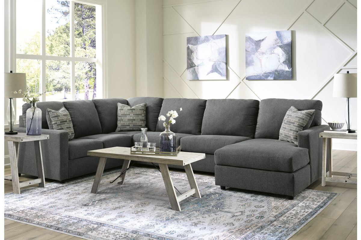 Contemporary fashion, meet superior form. This sectional with chaise is strikingly streamlined with its track arms. Cozy cushions invite superior relaxation, while handsome charcoal upholstery speaks to tried-and-true modern color palettes. Simply kick back, relax and settle into the calm of your curated space.