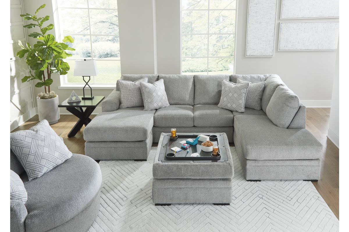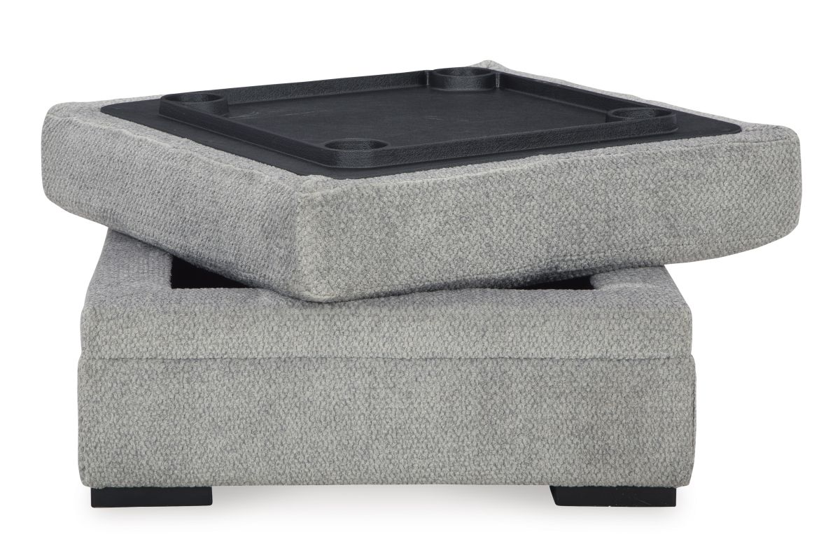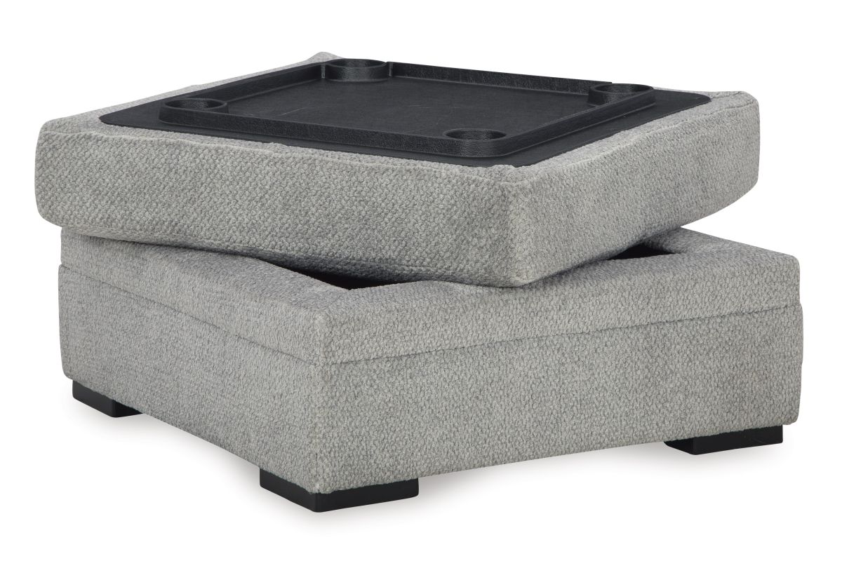 This ottoman with storage makes family movie nights and get-togethers with friends all the more cozy. Simply add it to your existing seating area as a chic footrest. It’s complete with a trendy gray hue for the contemporary style you crave. Use the easy-to-access storage space, or flip the lid to reveal handy cup holders. It's time to sit back and relax—this functional piece is ready to indulge you with everyday comfort.