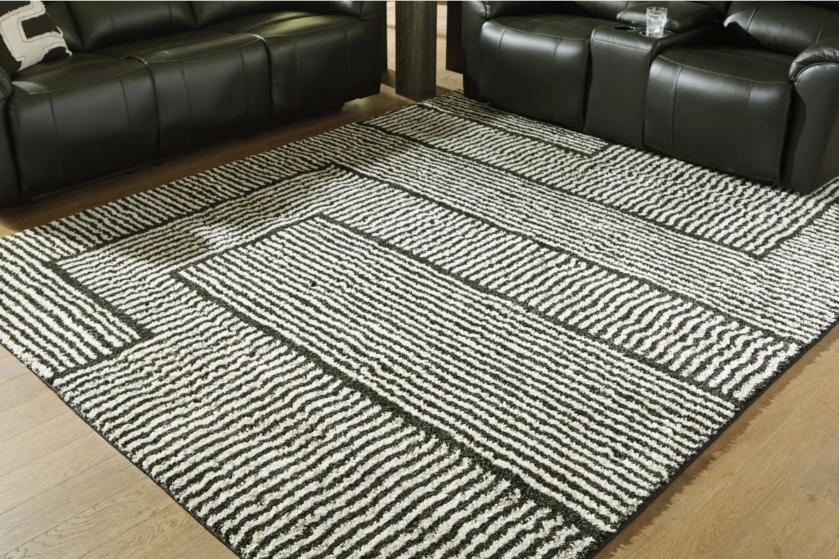 Prepare to be floored by this area rug. Crafted with a head-turning geometric design in on-trend black and ivory, this stunning piece infuses a modern sensibility in a variety of spaces. And its plush pile is loaded with feel-good texture for your tootsies.