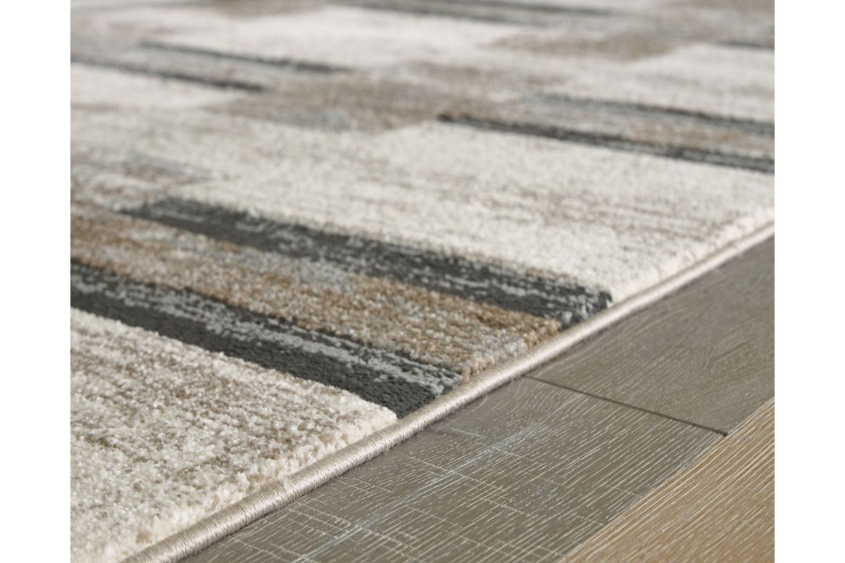 Add visual intrigue to your decor with the grounded style of this area rug. Its bold, chunky stripe design is subdued with a handsome neutral palette—keeping the look both intriguing and upscale. What a chic addition to casual spaces.