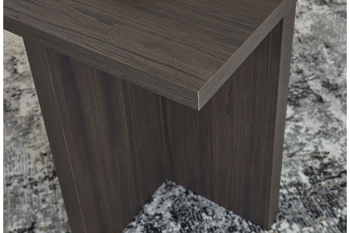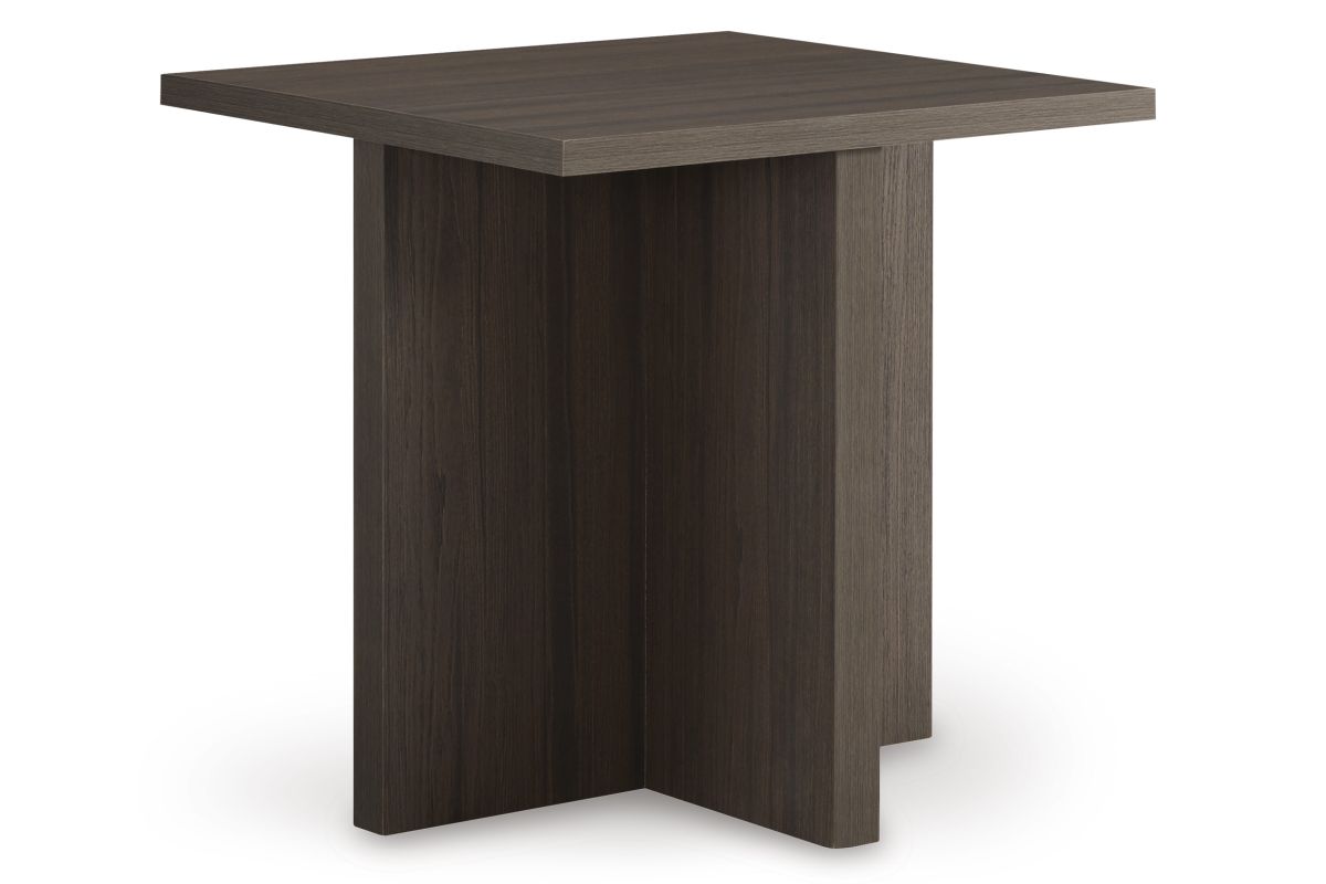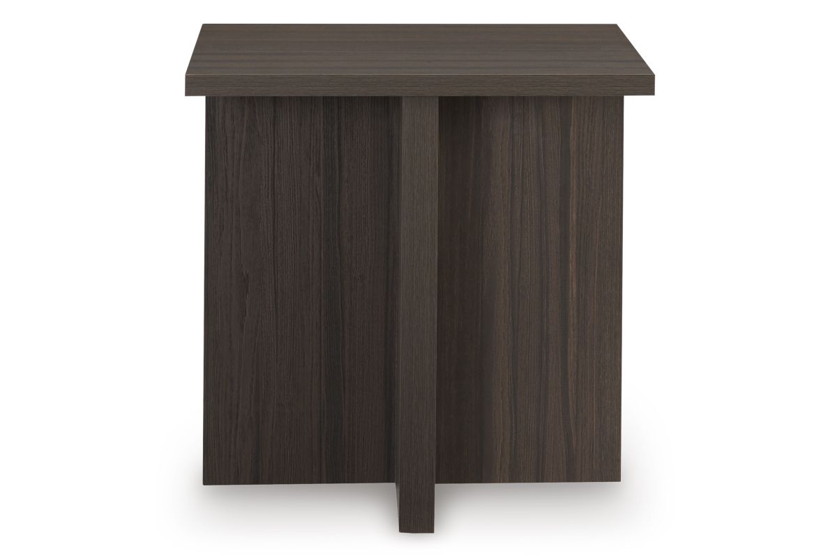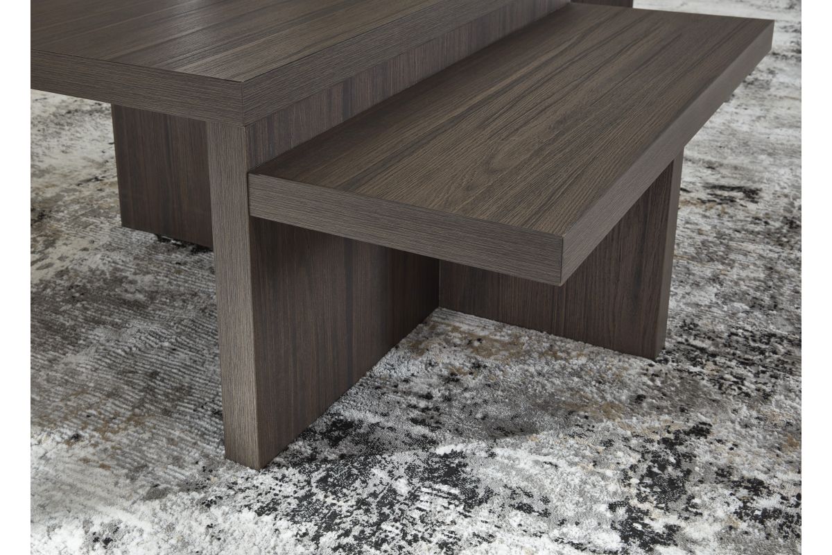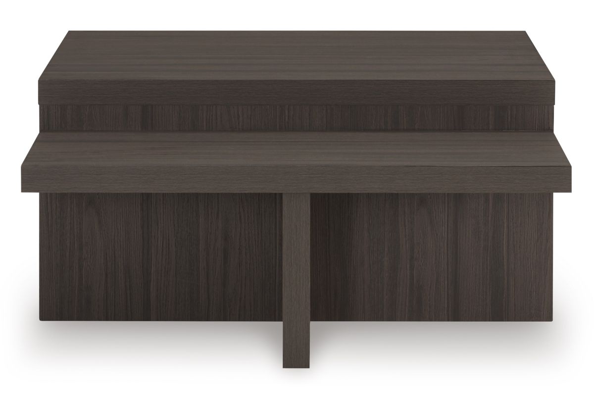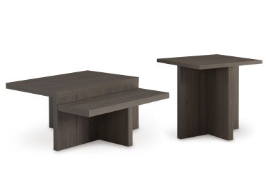 With its geometric allure, this table set serves as a striking focal point for casual or refined settings. Its clean lines and rich dark brown wood-grain finish create a warm and inviting atmosphere of natural beauty. Seamlessly blending with unpretentious lifestyle interiors, these tables offer distinctiveness and functionality.