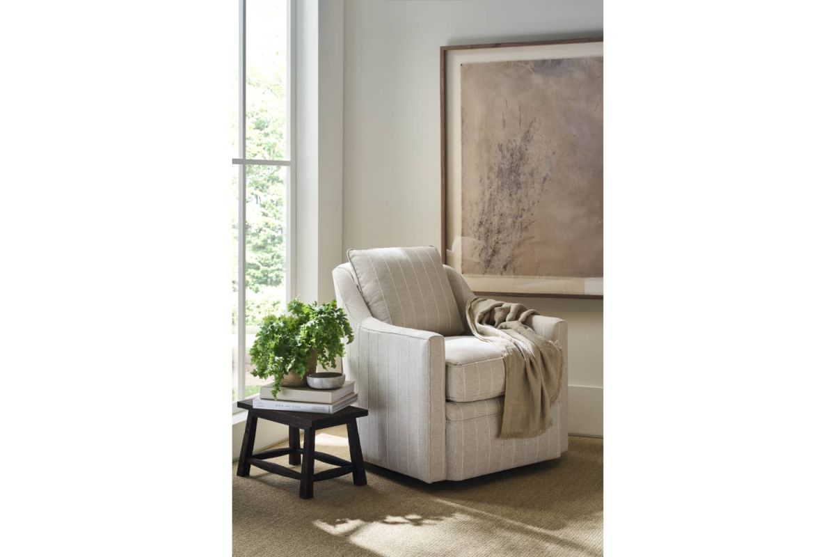 Introducing the Hollins Swivel Glider Chair - a perfect blend of comfort and style. With a rounded back, sloped arms, and multi-color chenille texture, this contemporary classic is ready to elevate your relaxation game.