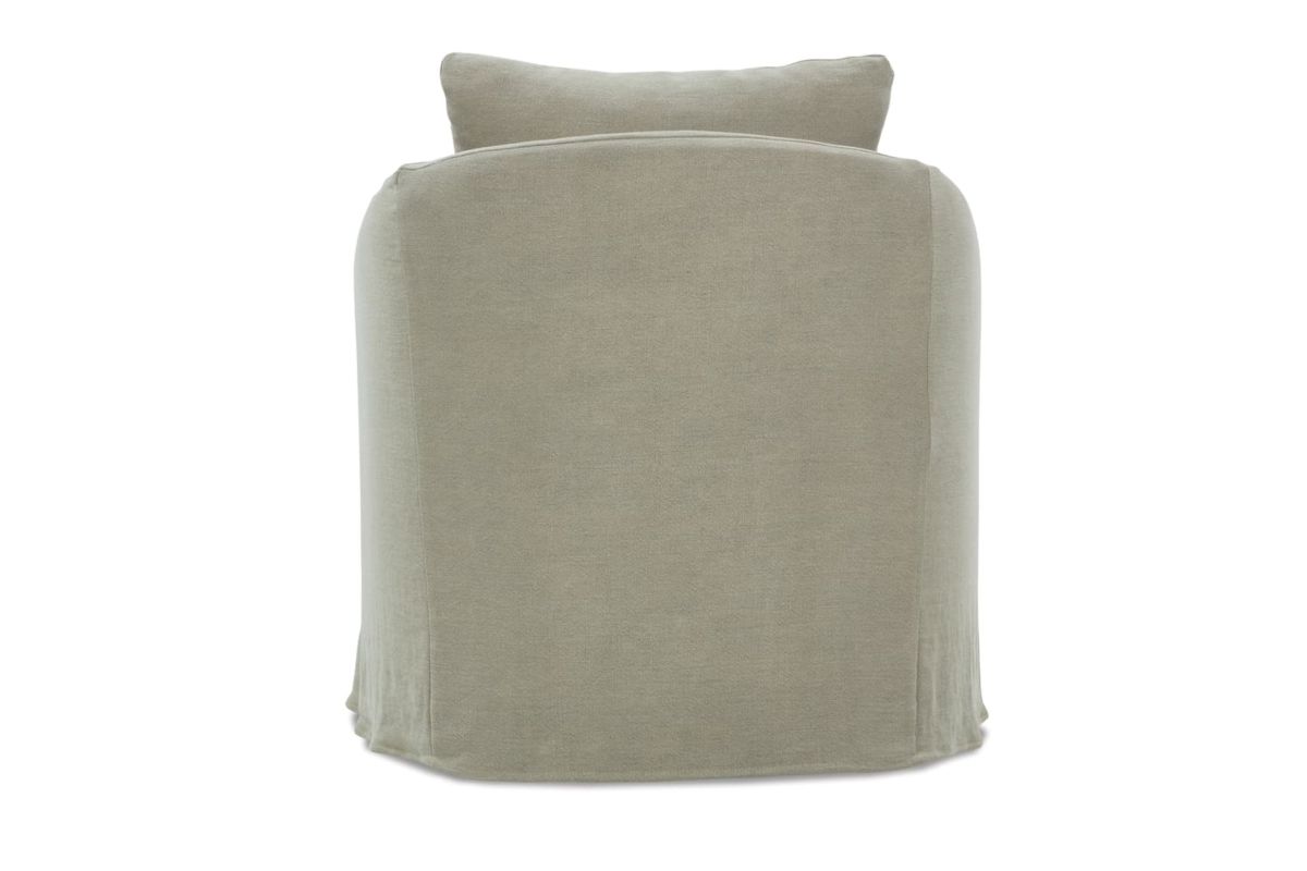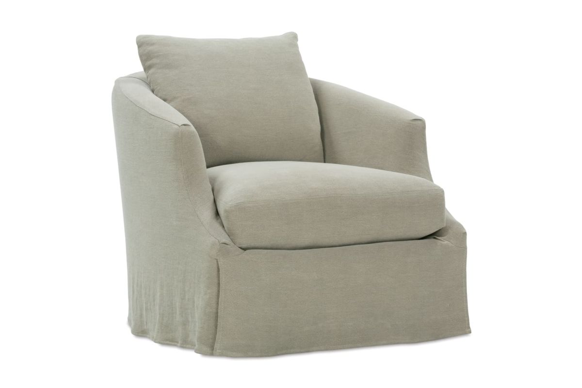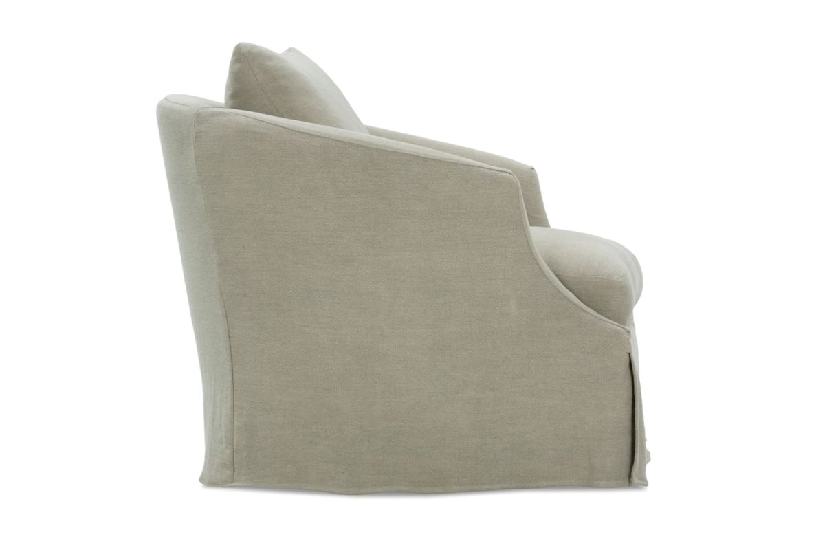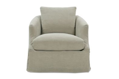 Bring a transitional feel to your home with this swivel chair. You'll love the look of its slipcover base and sloping arms with front cut-outs. Plus, this piece can be perfectly tailored to what you're searching for since the fabric can be customized to your home. Once you've designed the perfect piece, it'll last for years to come too since this chair is built with quality techniques and materials right here in America.