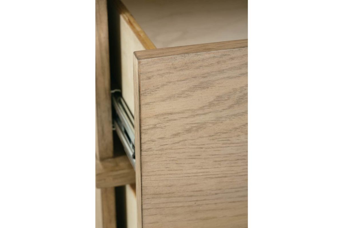 - Rubberwood solids, random matched flat cut White Oak Veneer in a Sand finish