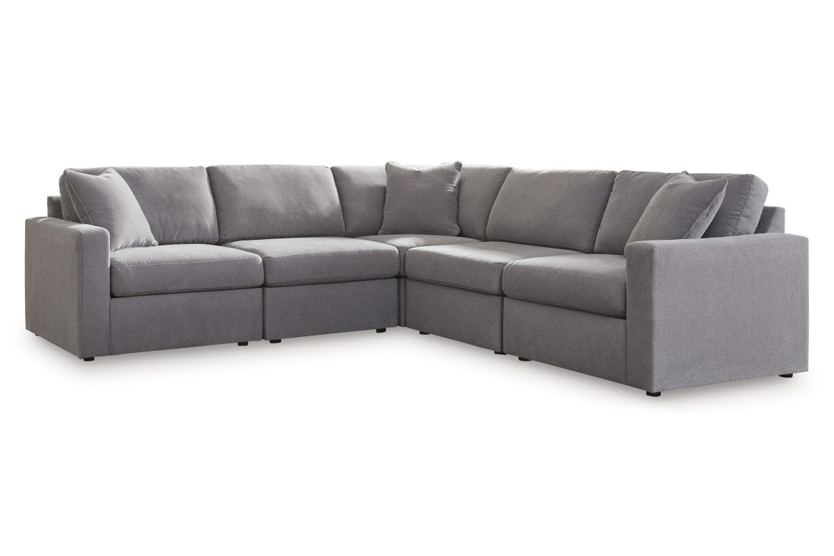 - Includes 5 modular pieces: left-arm facing corner chair, 2 armless chairs, wedge and right-arm facing corner chair