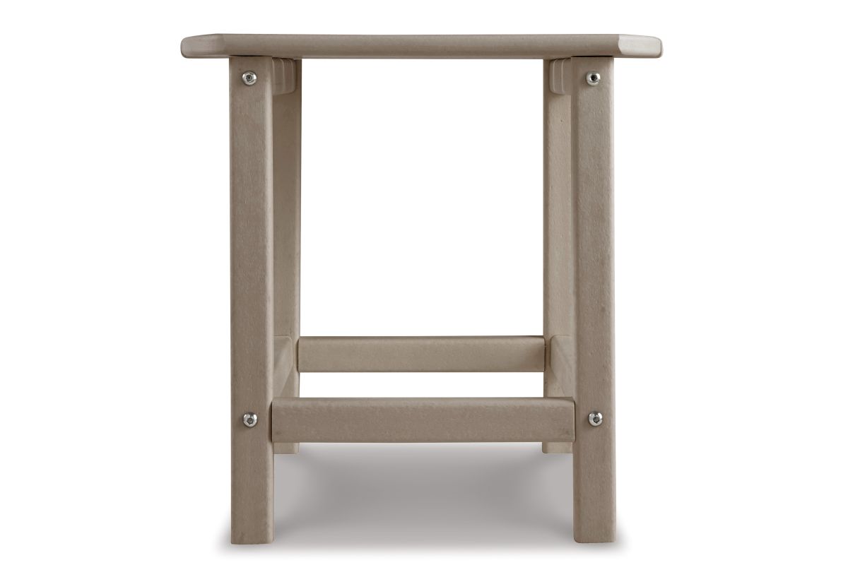 Add cottage-quaint charm to your outdoor oasis with this outdoor end table in a driftwood finish. Made of MEGA-TUFF® high-density polyethylene material, it’s sure to weather the seasons beautifully. Designed to shed rainwater, the table’s slatted top with gently rounded corners provides exceptional form and function.