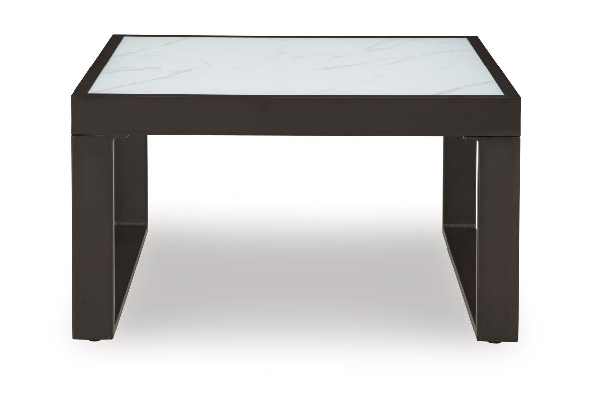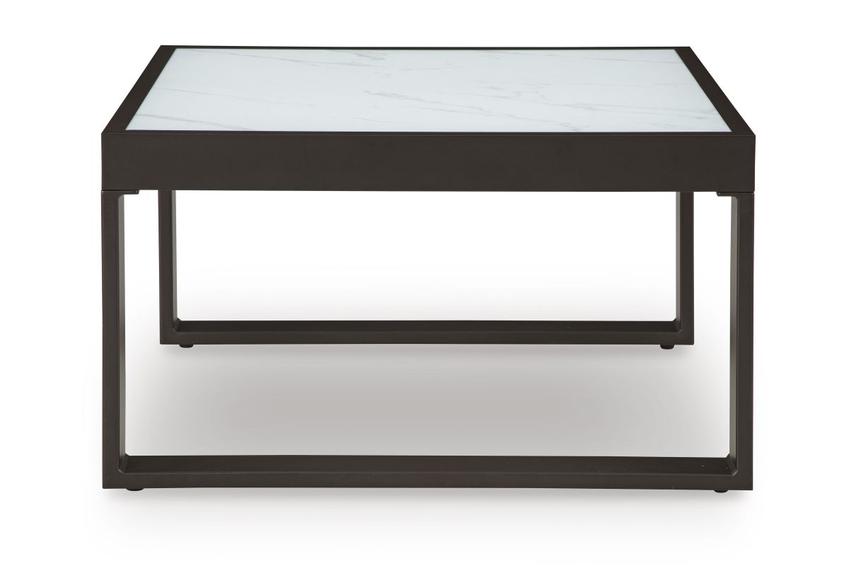 Sleek, contemporary style meets outdoor living in this coffee table. Its clean-lined black aluminum frame expertly balances good looks and longevity. A stunning top provides the natural stone look you love, while its glass construction weathers the seasons beautifully. With this coffee table on the back porch or poolside, you can confidently curate a luxe vibe.