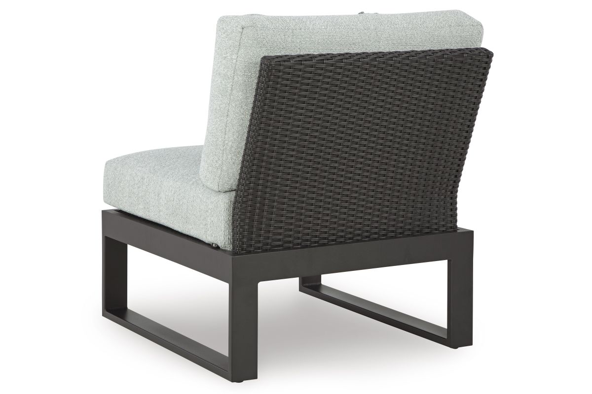 Sleek, contemporary style meets outdoor living in this sectional. Its clean-lined black aluminum frame and resin wicker back expertly balance good looks and longevity. The enhanced UV resistance of Nuvella+™ fabric keeps the cushions light and bright, weathering the seasons beautifully. And the modular design allows you to switch up the layout when it’s time for a refresh. With this sectional on the back porch or poolside, you can confidently curate a luxe vibe.
