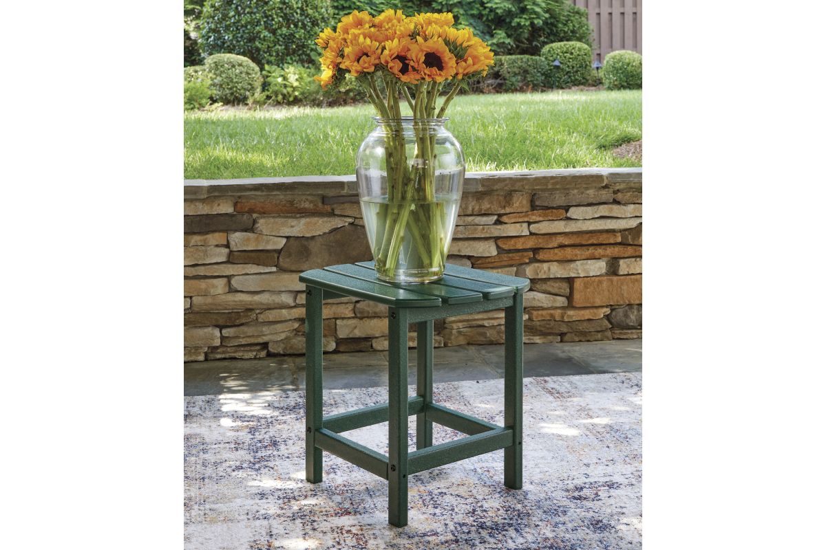Add cottage-quaint charm to your outdoor oasis with this outdoor end table in green. Made of MEGA-TUFF® high-density polyethylene material, it’s sure to weather the seasons beautifully. Designed to shed rainwater, the table’s slatted top with gently rounded corners provides exceptional form and function.