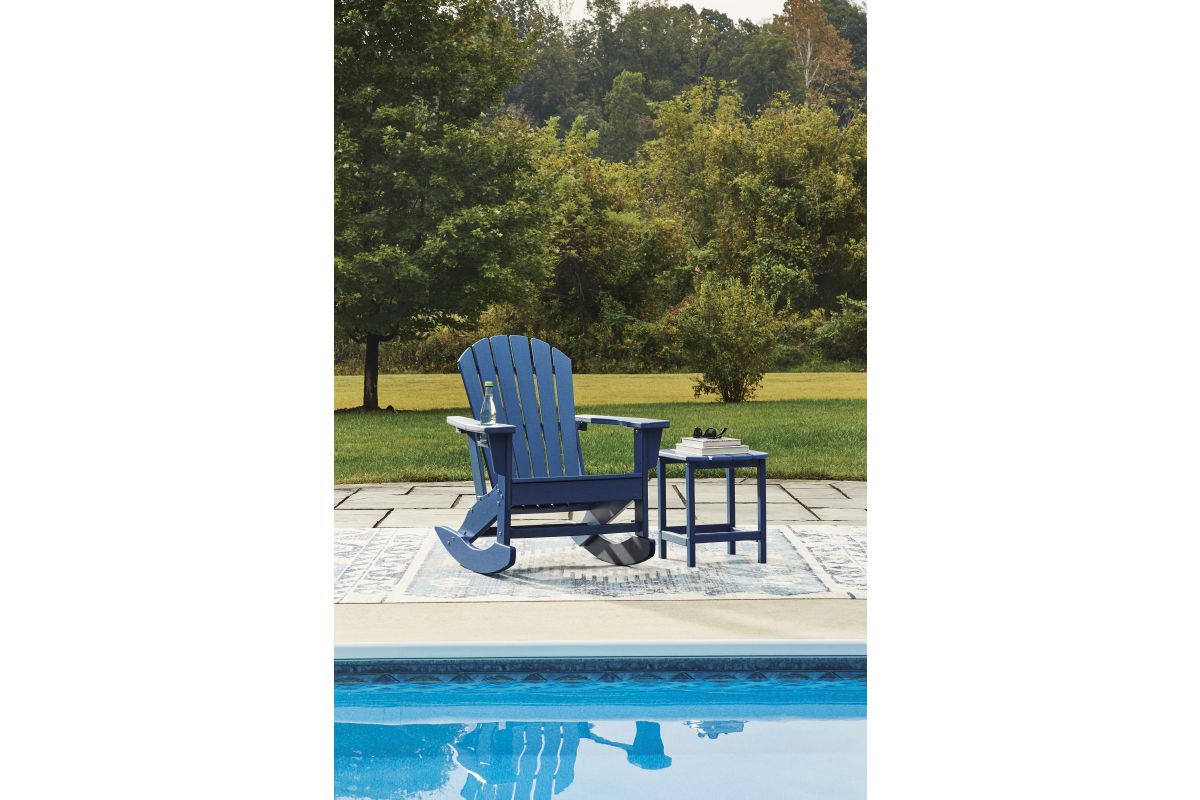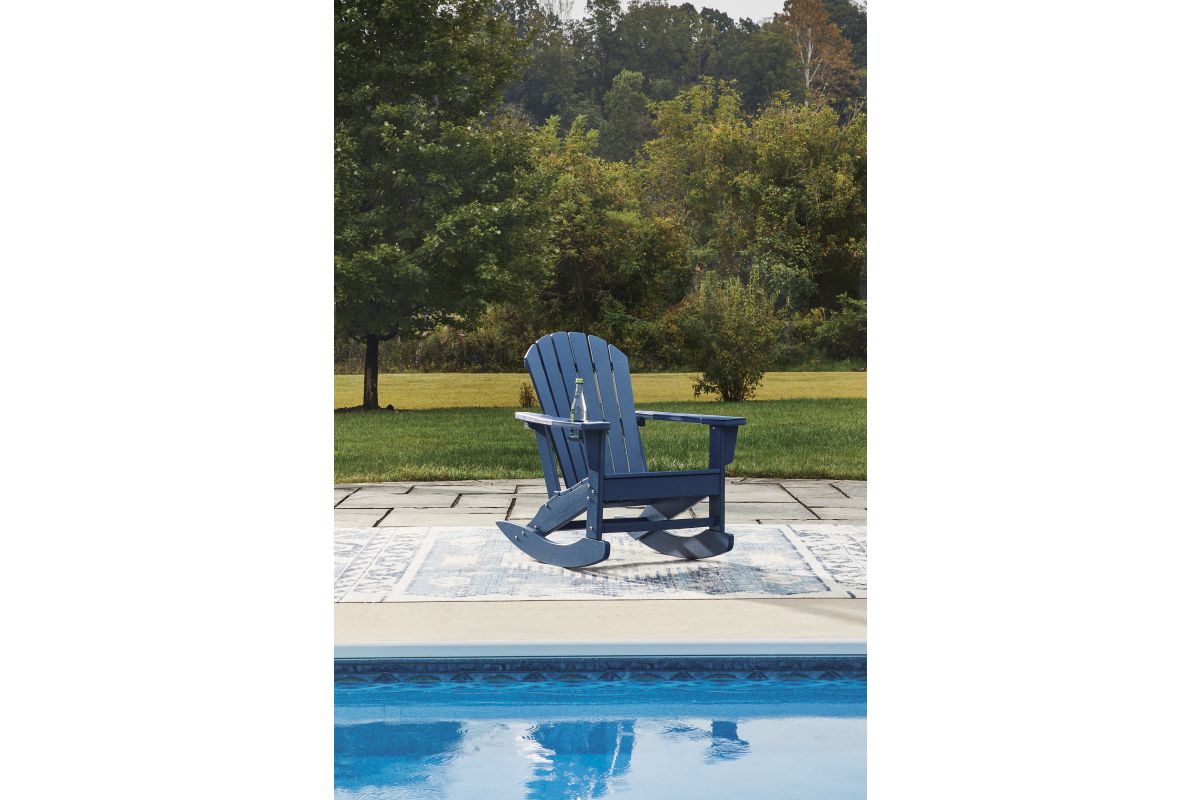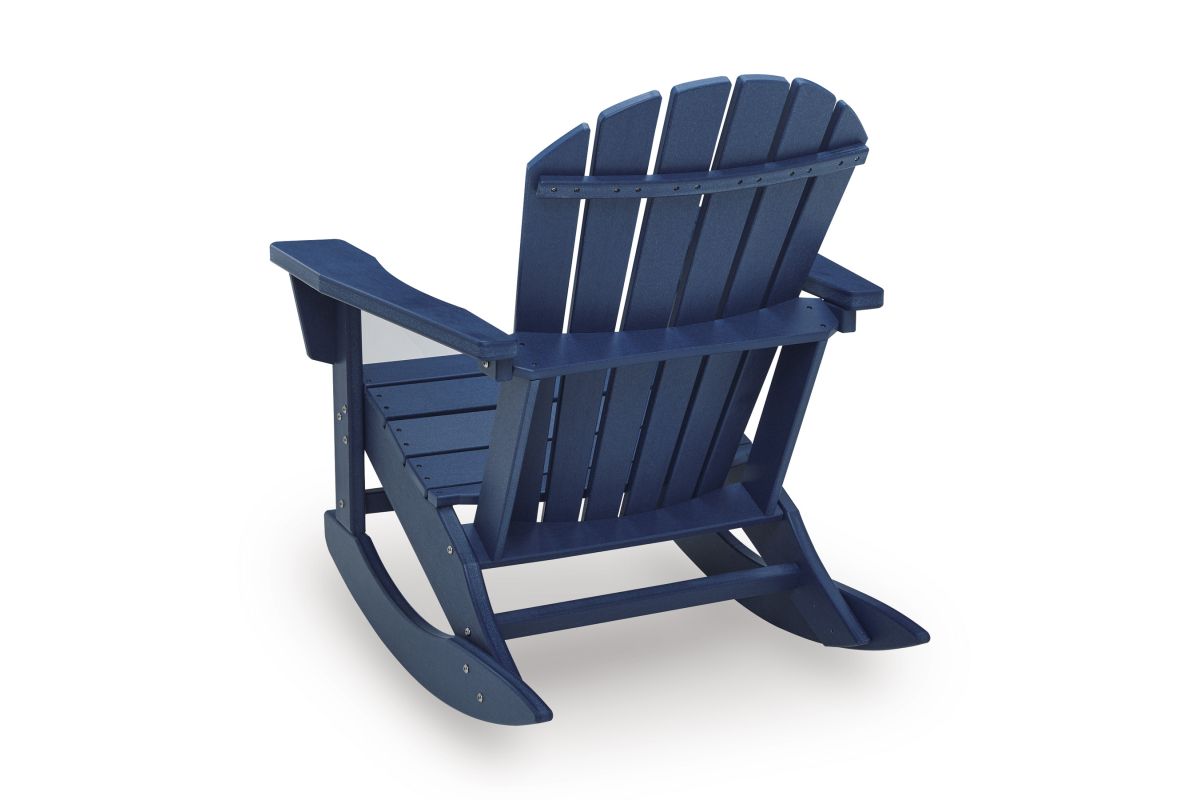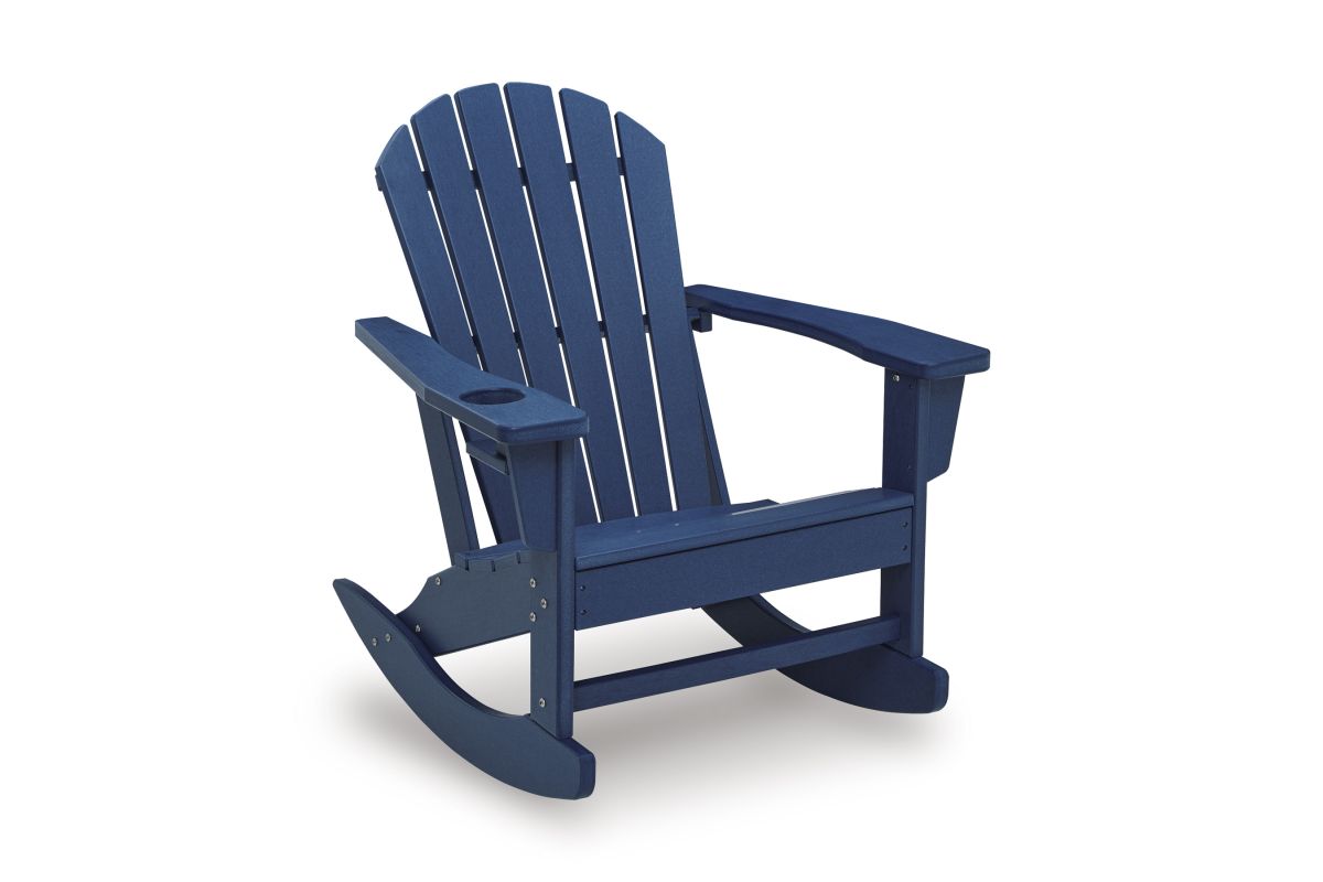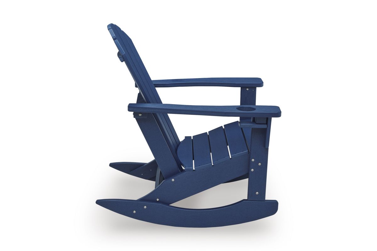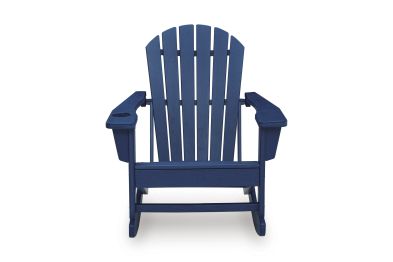 Add cottage-quaint charm to your outdoor oasis with this rocking chair in blue. Made of MEGA-TUFF® high-density polyethylene material, it’s sure to weather the seasons beautifully. Designed to shed rainwater, the chair’s slatted styling and classic Adirondack design provide exceptional form and function.