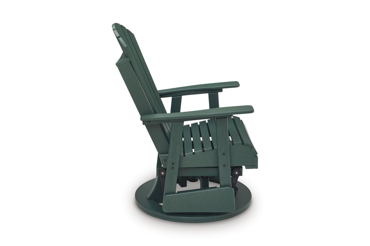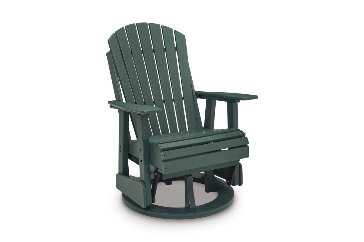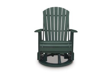 Drift away from everyday worries and into outdoor bliss with this swivel glider chair. Dressed in a refreshing green hue, the Adirondack-inspired design has a fresh feel. It weathers sunny summer days and cozy winter nights with durable MEGA-TUFF™ HDPE material. When it comes to form and function, the chair's 360-degree swivel and rain-shedding slatted design simply go with the flow.