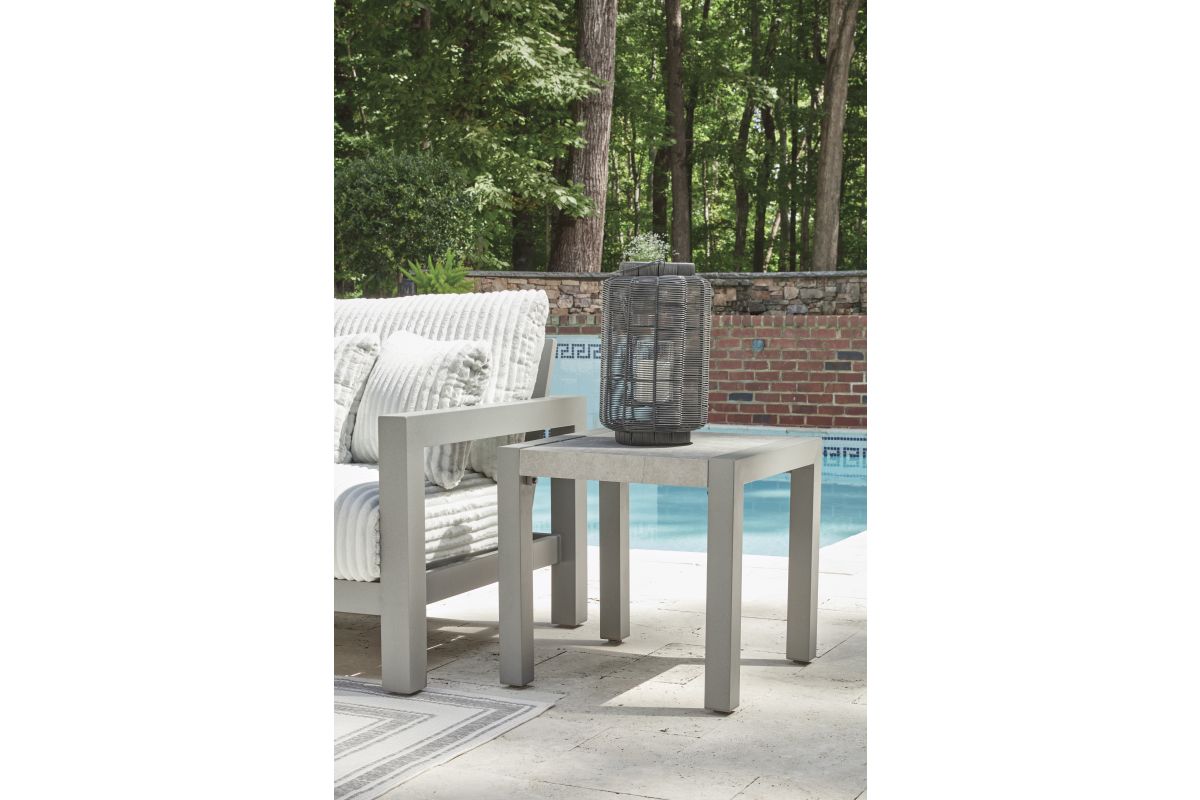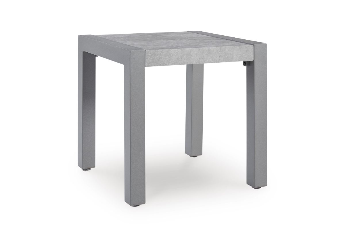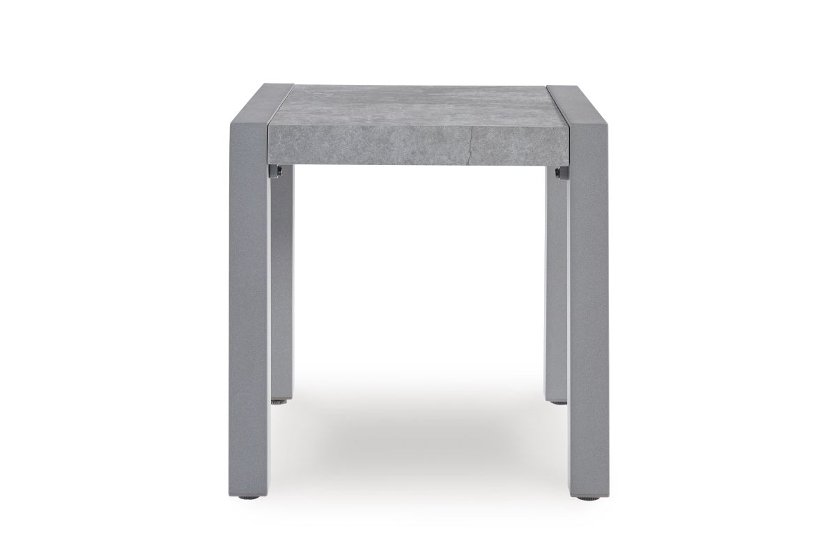 Indulge in luxe outside living without sacrificing longevity. This outdoor end table combines natural beauty with a sleek aluminum frame. Soak up the sun poolside or on the porch—it’s the perfect perch for your drink or latest read. And with a chic gray stone tabletop, style and durability go hand in hand.