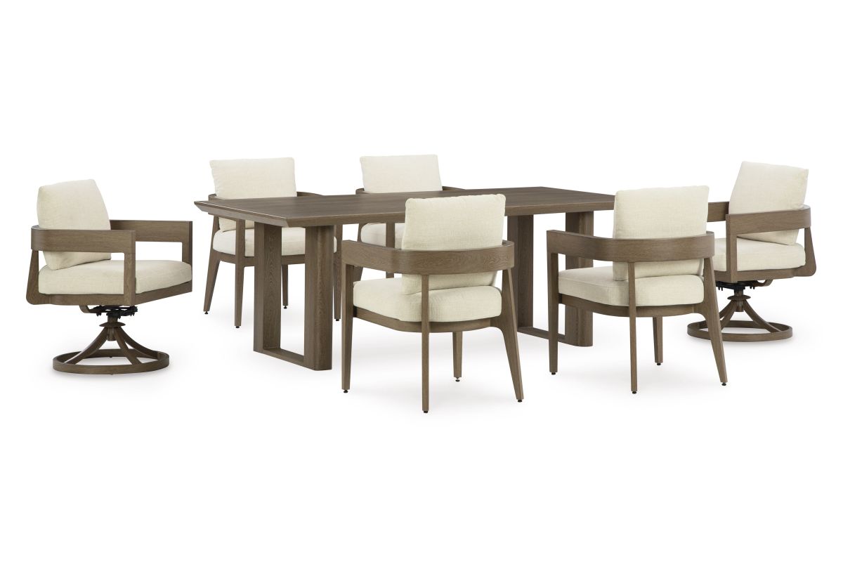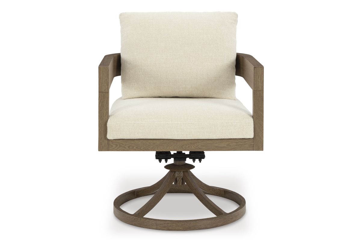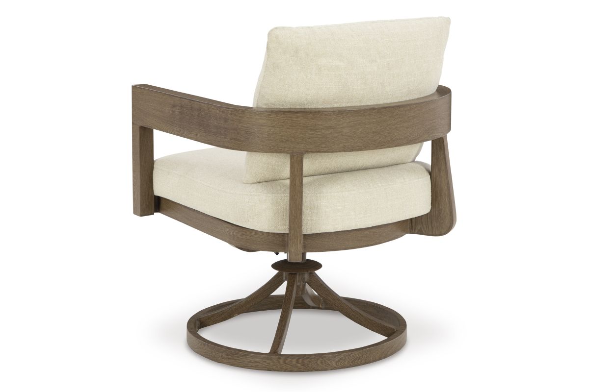 Elevate the appeal of easy-breezy living with the Serene Bay outdoor package. Made to look like wood yet durable enough to weather the elements, this furniture is sure to serve you and your besties well, year after year. The gently curved chairs feature cushions wrapped in Nuvella+™ high-performance fabric for plush refinement.