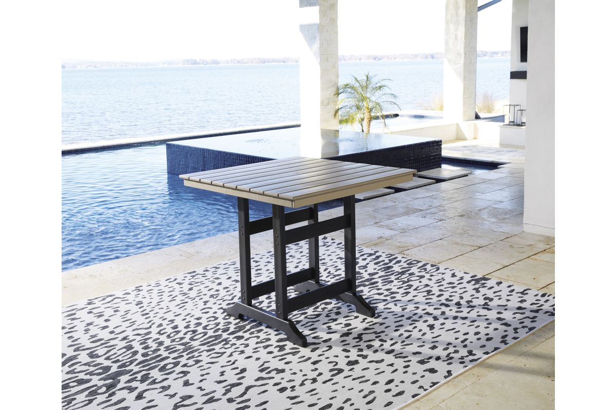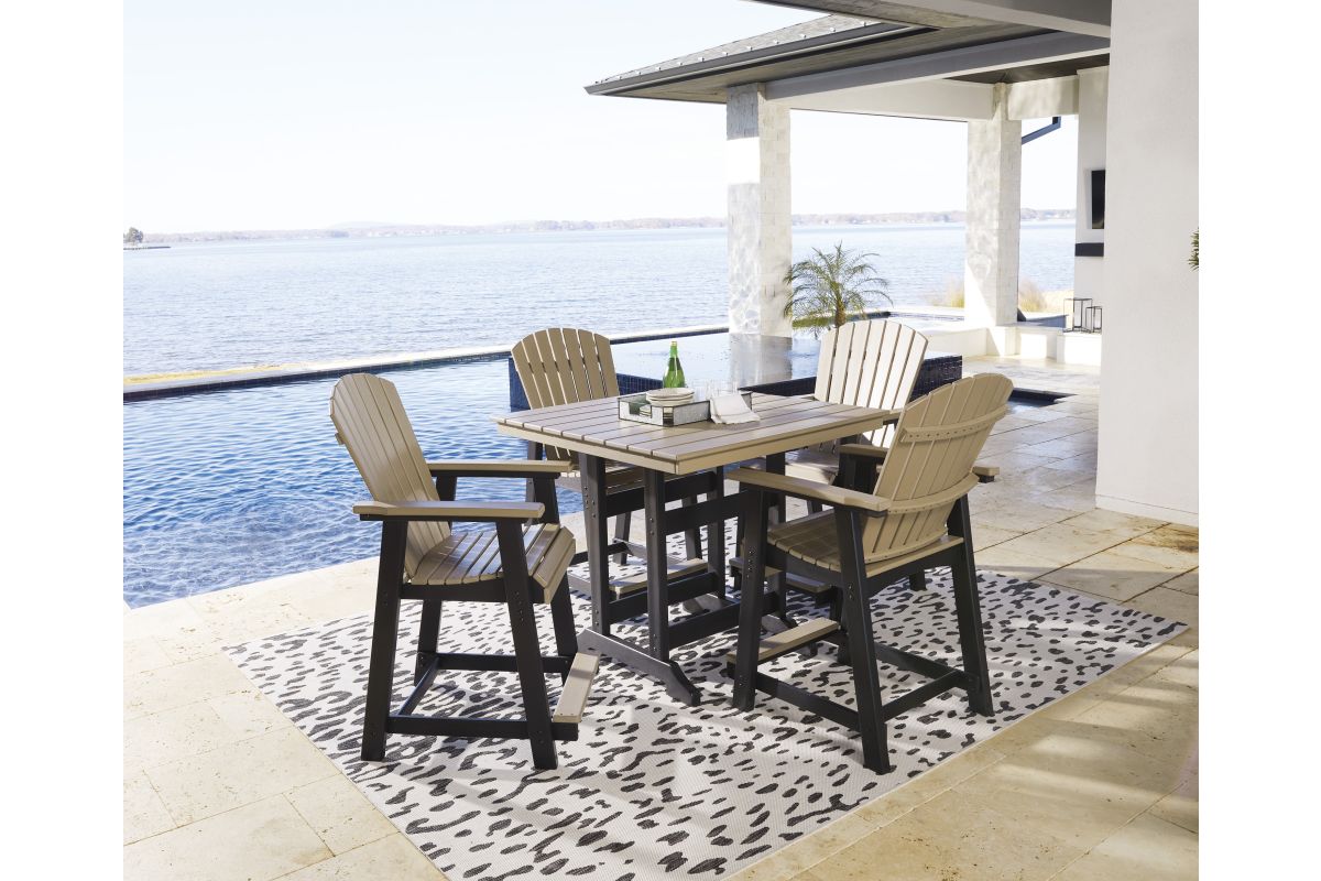 Raise the bar on outdoor living with the Fairen Trail dining set. Crafted for style, comfort and MEGA TUFF™ durability, the counter height table and bar stools cater with a standout look that pairs tones of driftwood and black. The table's umbrella hole lets you throw some shade on your outdoor living space.