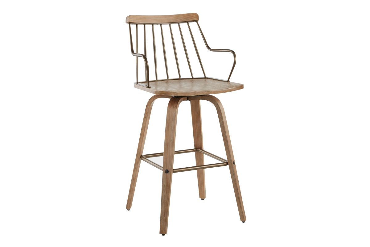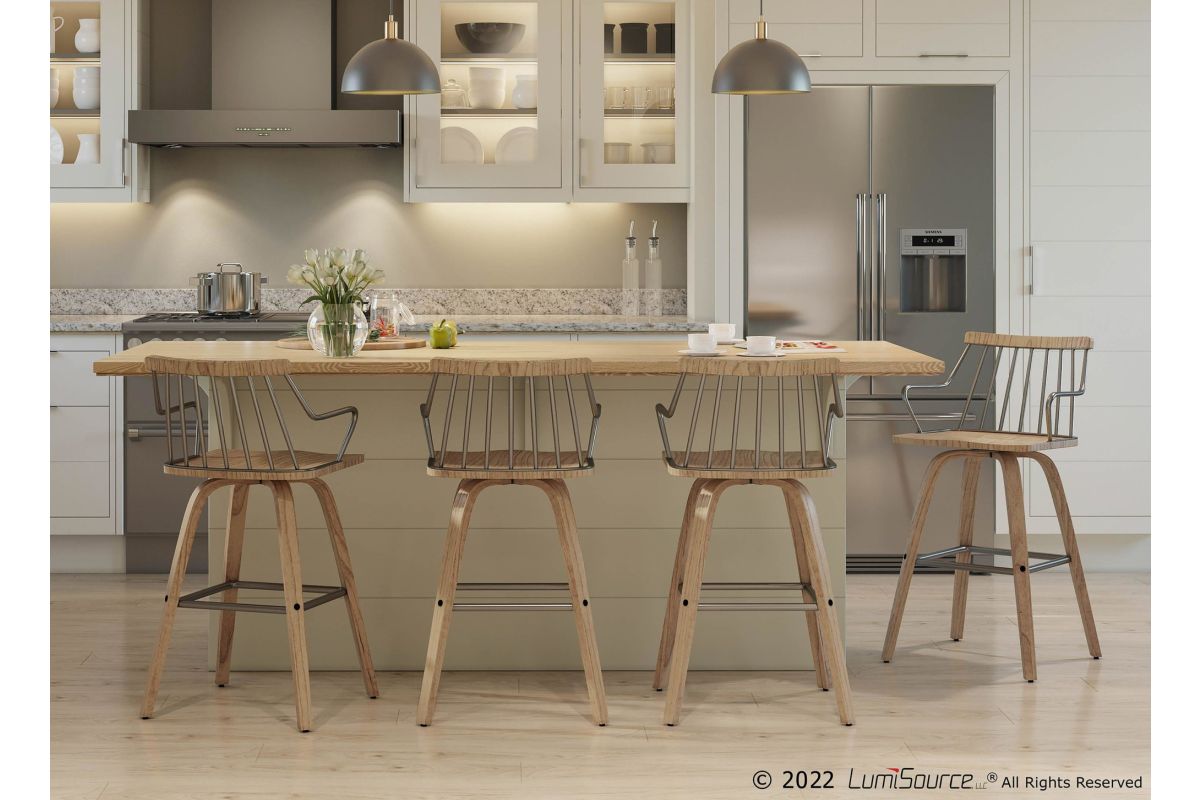 Perfect for your farmhouse inspired space, the Preston Counter Stool features stylish white washed wood, a metal spindle backrest, and a swivel seat. Ultra versatile, the Preston is great for use in any kitchen, bar, or break room.