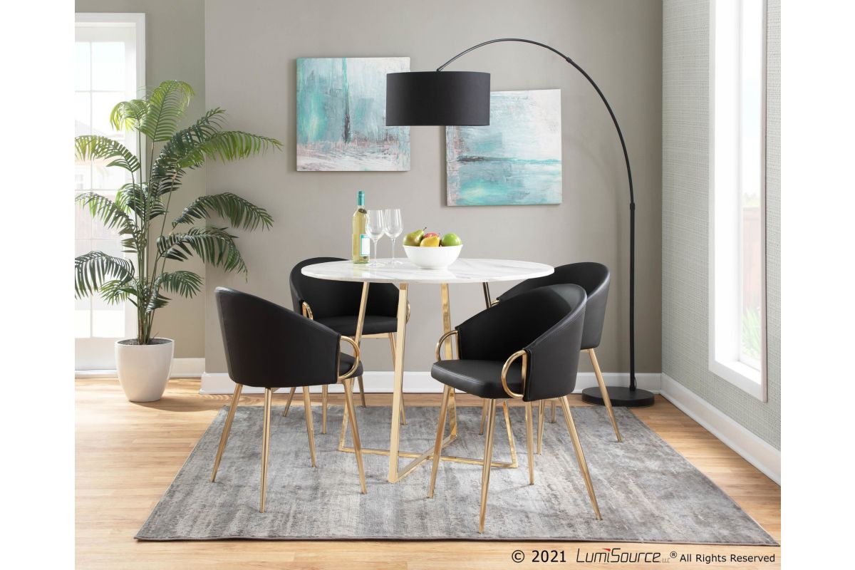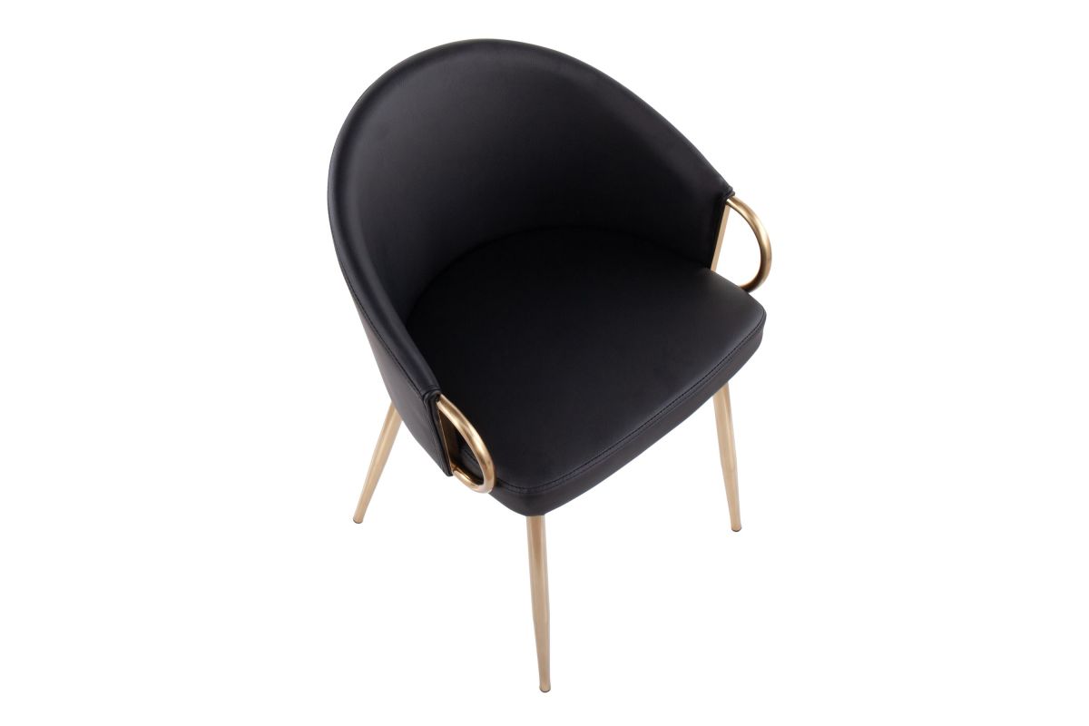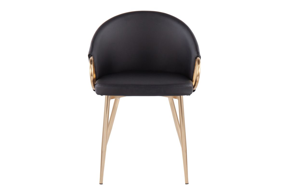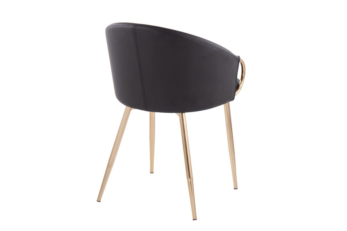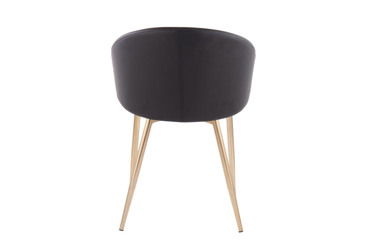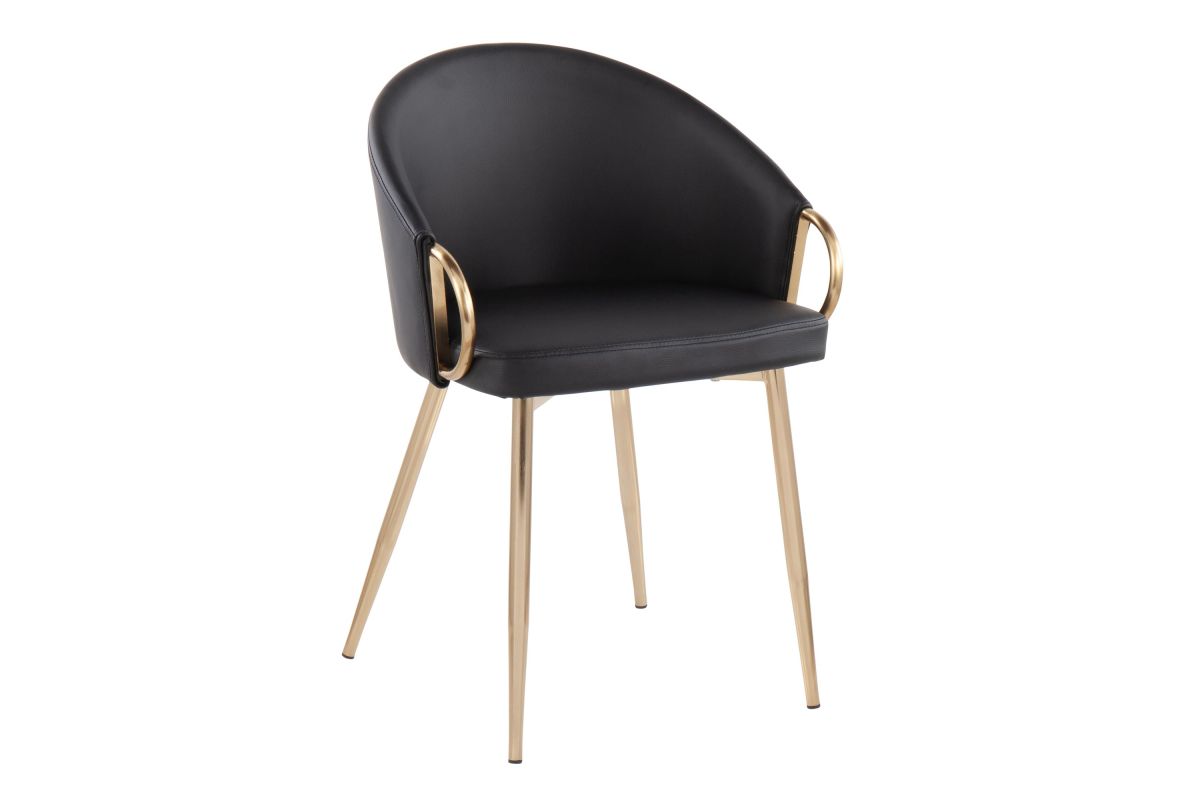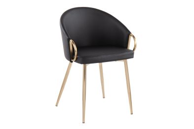 Chic modern style shines bright with the unique design of the Claire Chair by LumiSource. With a rounded low backrest, sleek gold armrests, and frame, it's the perfect piece for your contemporary dining area. The Claire Chair is available in lush velvet or faux leather upholstery.