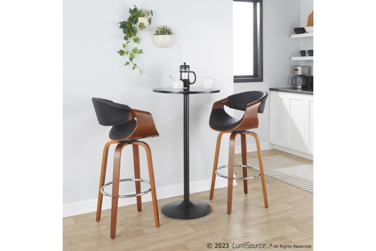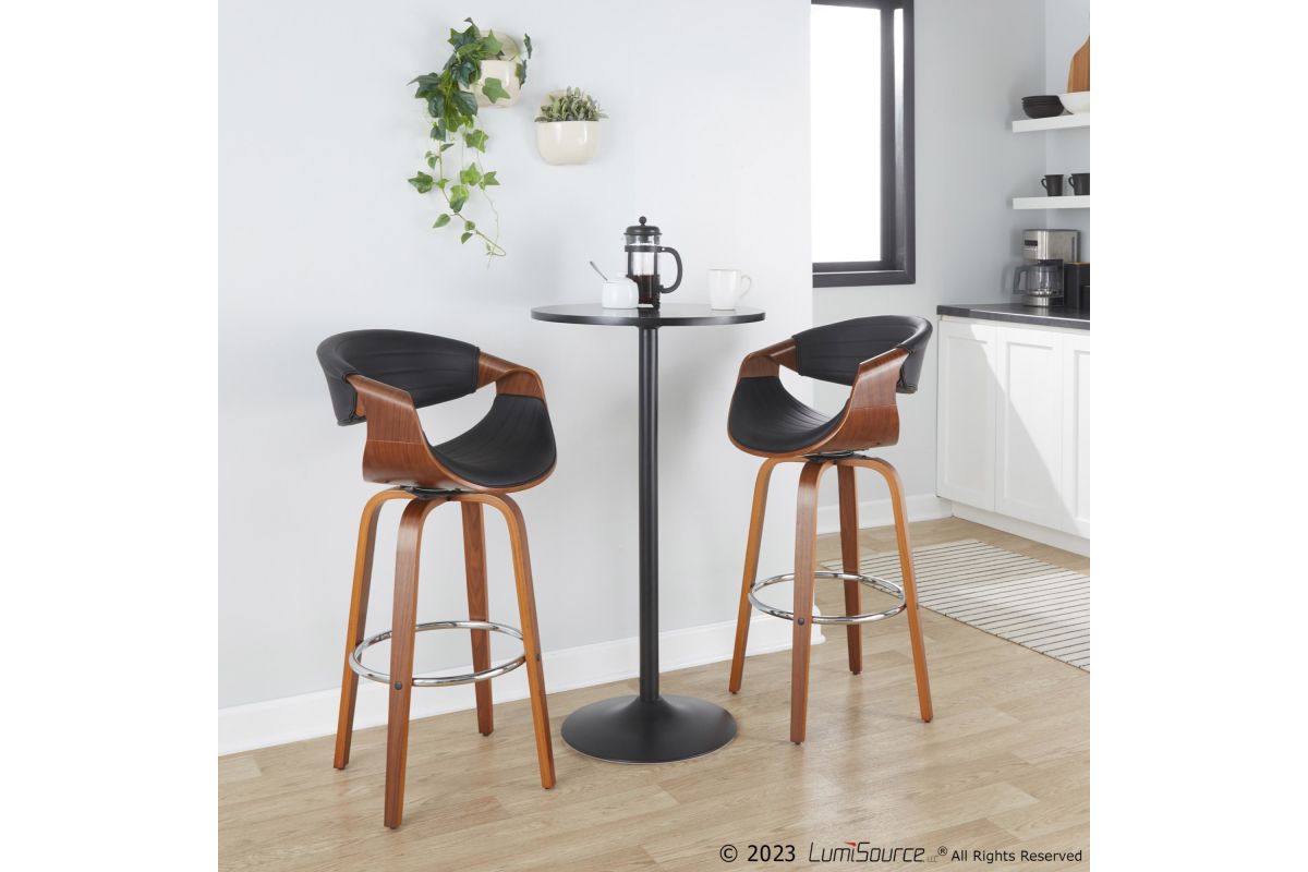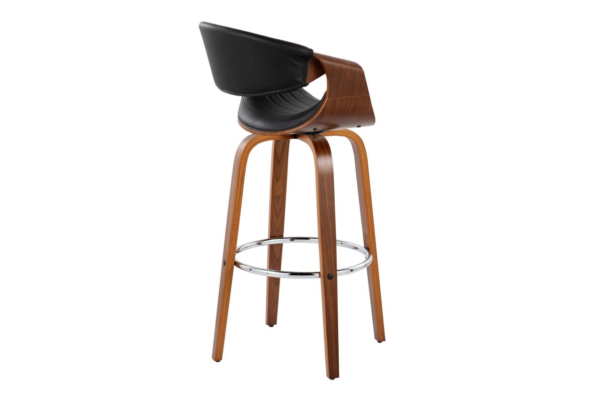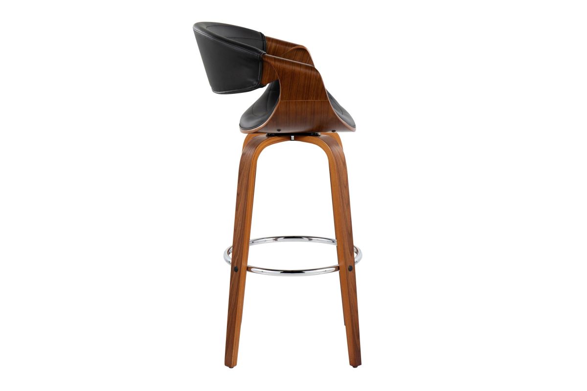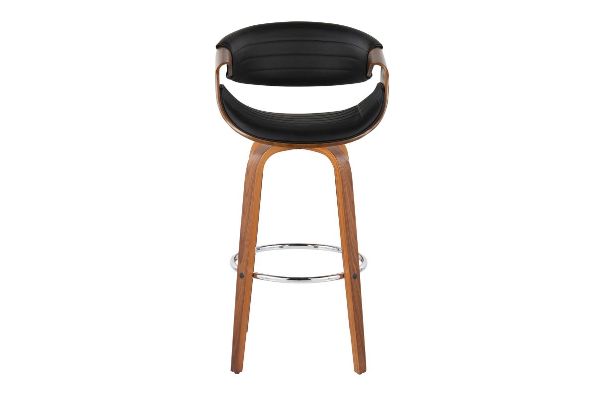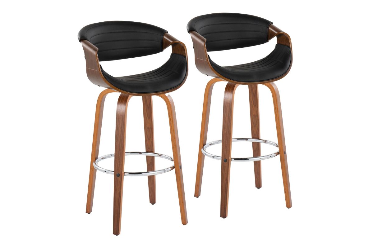 Elevate your home bar or counter with the Symphony Barstool by LumiSource. Crafted with a sleek walnut wood frame and chrome footrest, this barstool blends modern style and timeless comfort. The tufted faux leather seat provides a luxurious perch, while the bentwood design adds an organic touch to any space. Bring refined elegance to your home bar or kitchen counter with the sophisticated Symphony Barstool.