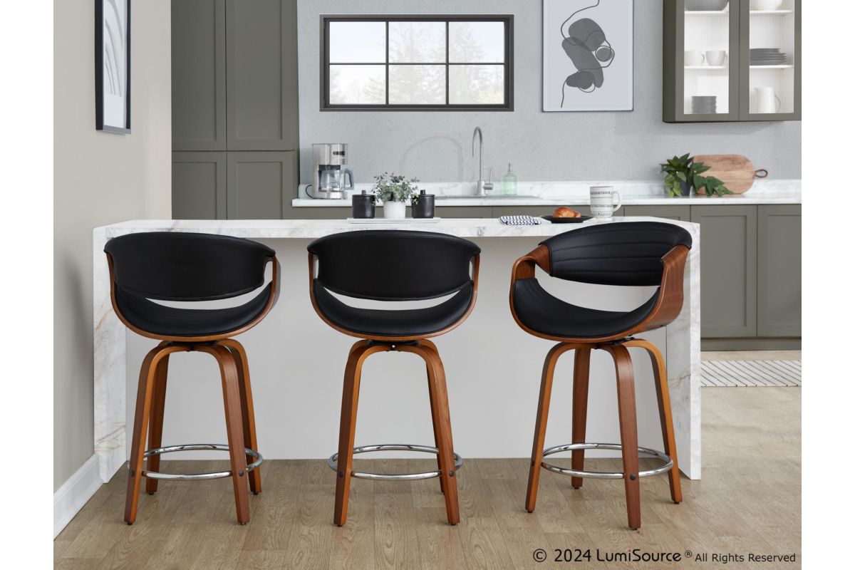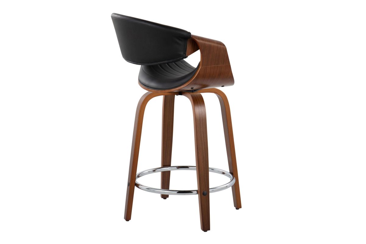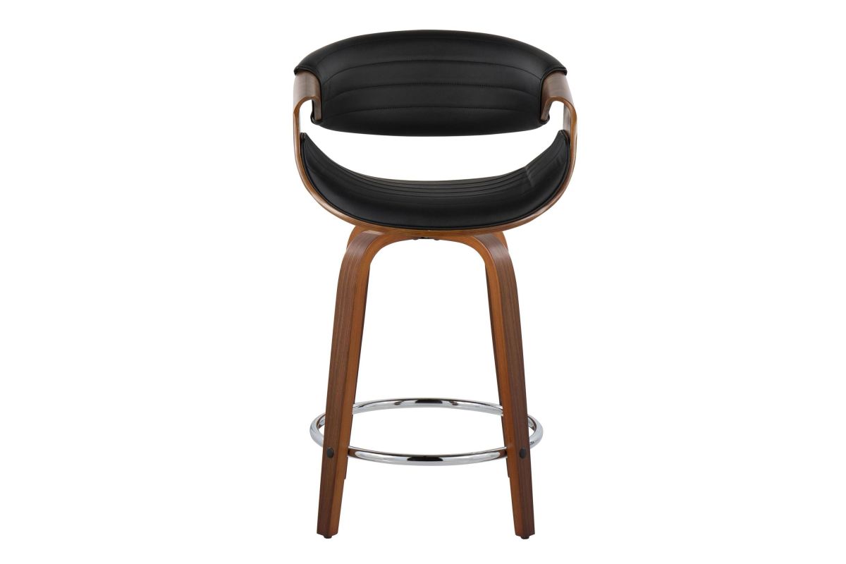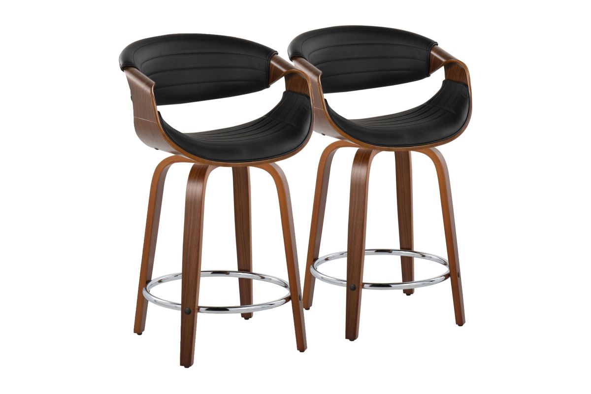 Elevate your kitchen counter or dining area with the Symphony Counter Stool by LumiSource. Crafted with a sleek walnut wood frame and chrome footrest, this counter stool combines modern style with timeless comfort. The tufted faux leather seat offers a luxurious perch, while the bentwood design adds an organic touch to any space. Bring refined elegance to your kitchen counter or dining area with the sophisticated Symphony Counter Stool.
