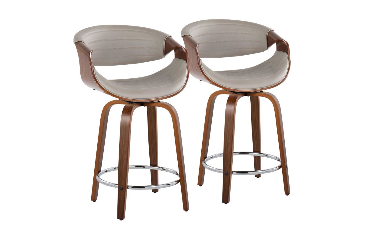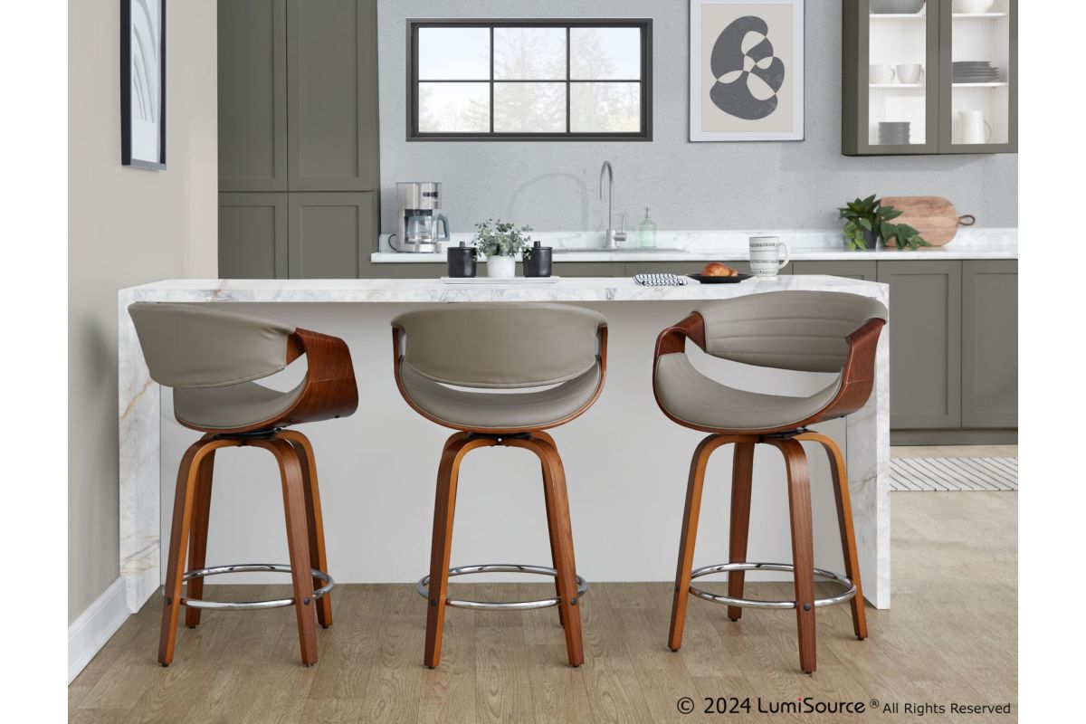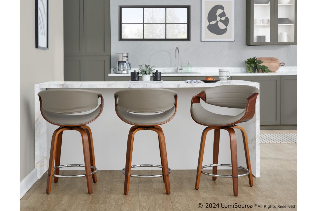 Elevate your kitchen counter or dining area with the Symphony Counter Stool by LumiSource. Crafted with a sleek walnut wood frame and chrome footrest, this counter stool combines modern style with timeless comfort. The tufted faux leather seat offers a luxurious perch, while the bentwood design adds an organic touch to any space. Bring refined elegance to your kitchen counter or dining area with the sophisticated Symphony Counter Stool.