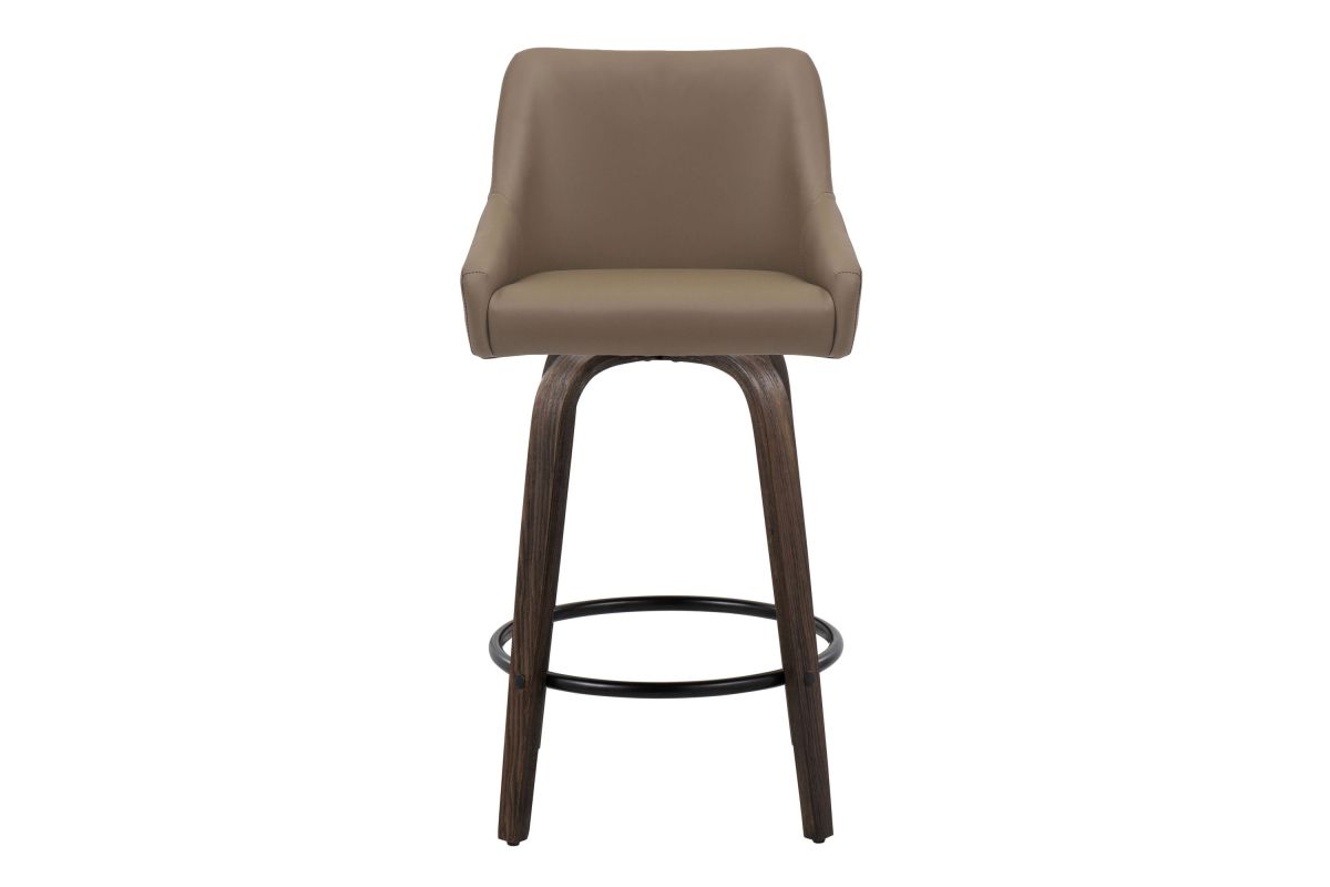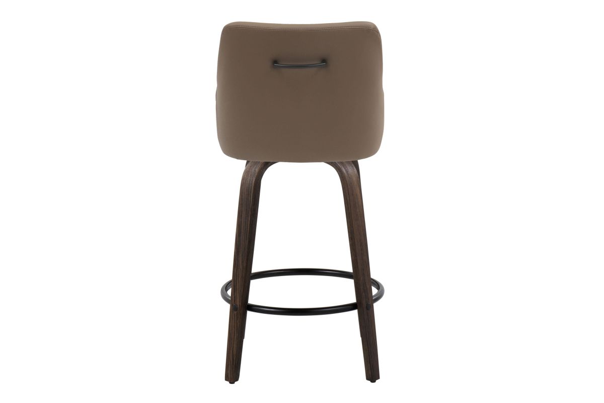 Elegant and simple, the LumiSource Hannah Fixed-Height Counter Stool will furnish any eating area in style. Featuring sleek bent wood legs, a comfortable padded upholstered seat, and a decorative handle adorning the seat back, the Hannah will elevate any space with its satisfying transitional design. Available in a variety of upholstery colors and finishes, choose the one that fits your space best.