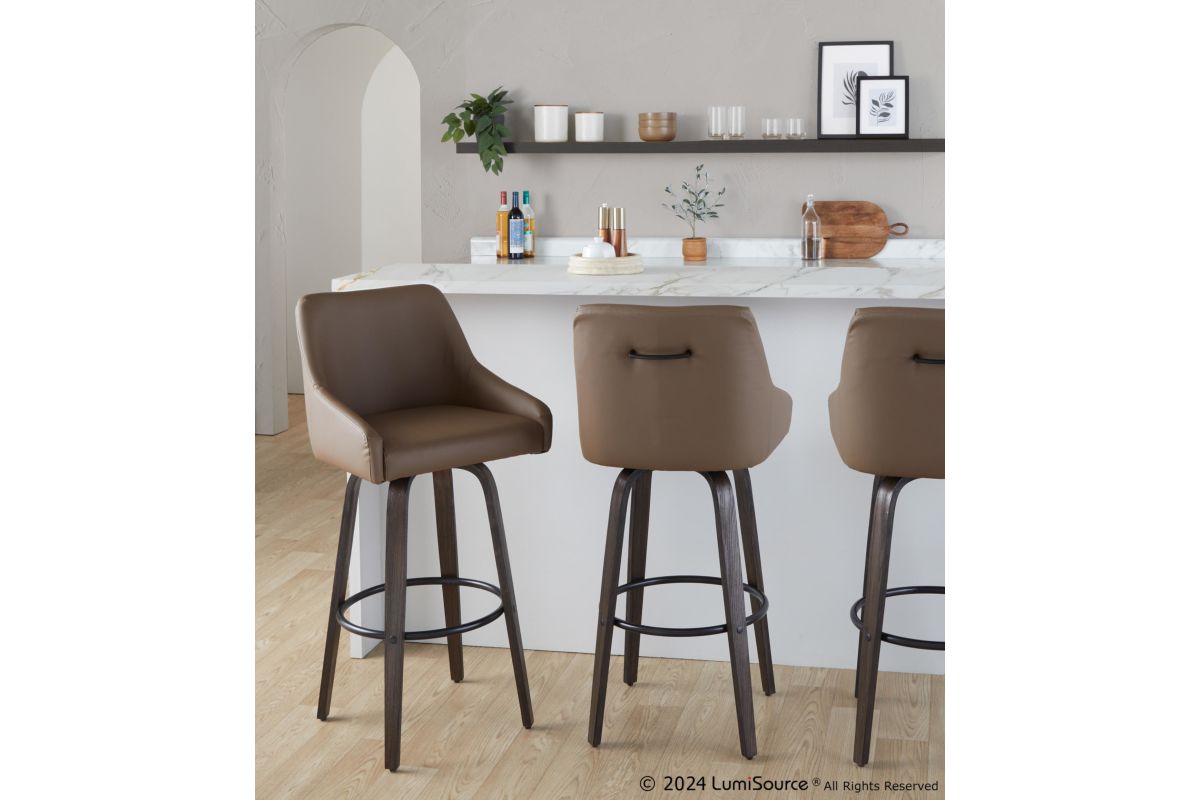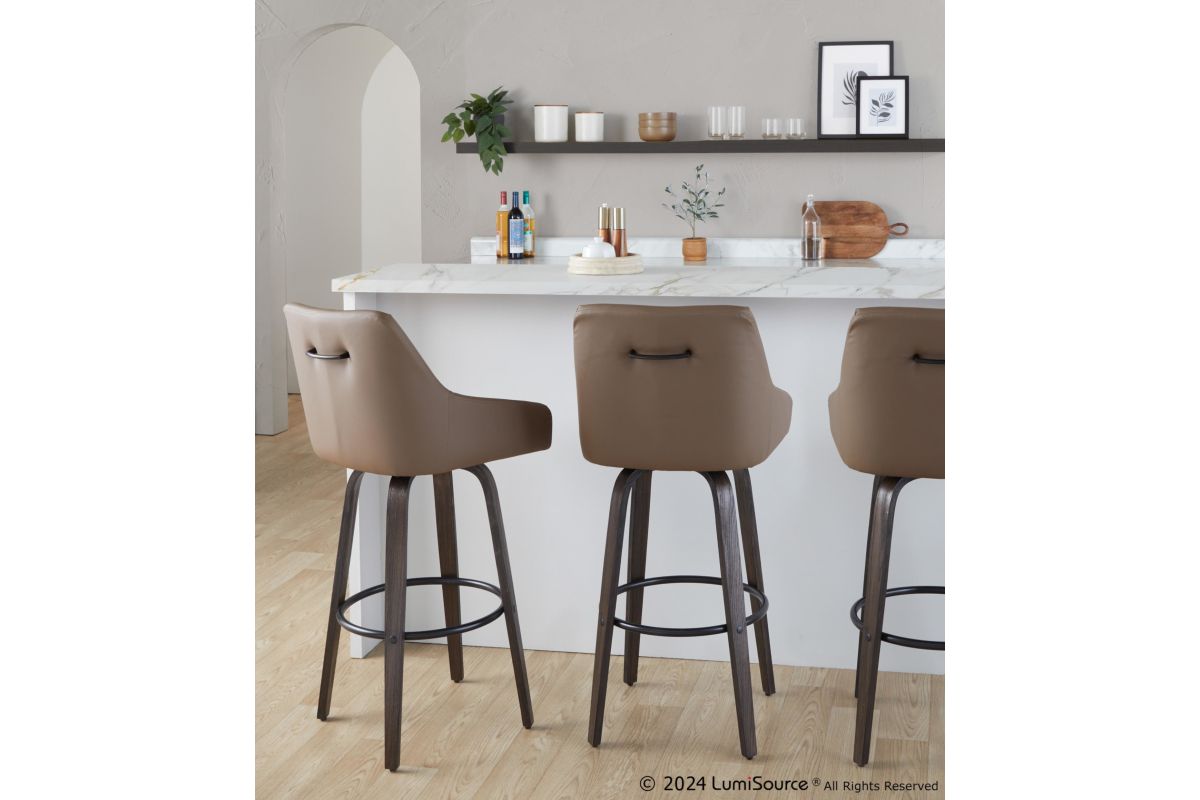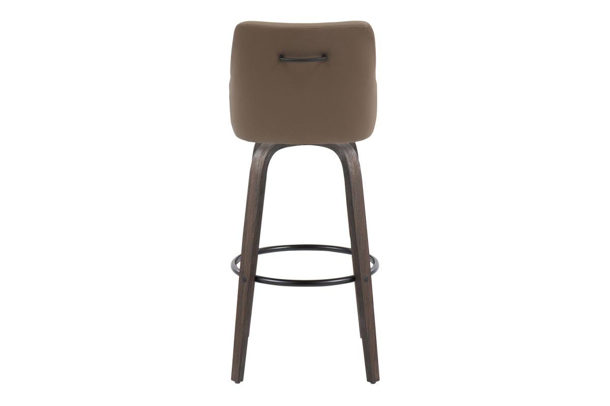 Elegant and simple, the LumiSource Hannah Fixed-Height Barstool will furnish any eating area in style. Featuring sleek bent wood legs, a comfortable padded upholstered seat, and a decorative handle adorning the seat back, the Hannah will elevate any space with its satisfying transitional design. Available in a variety of upholstery colors and finishes, choose the one that fits your space best.