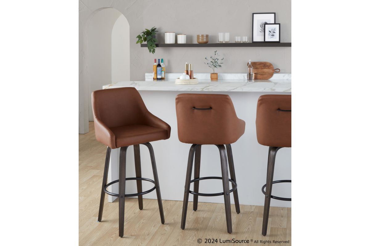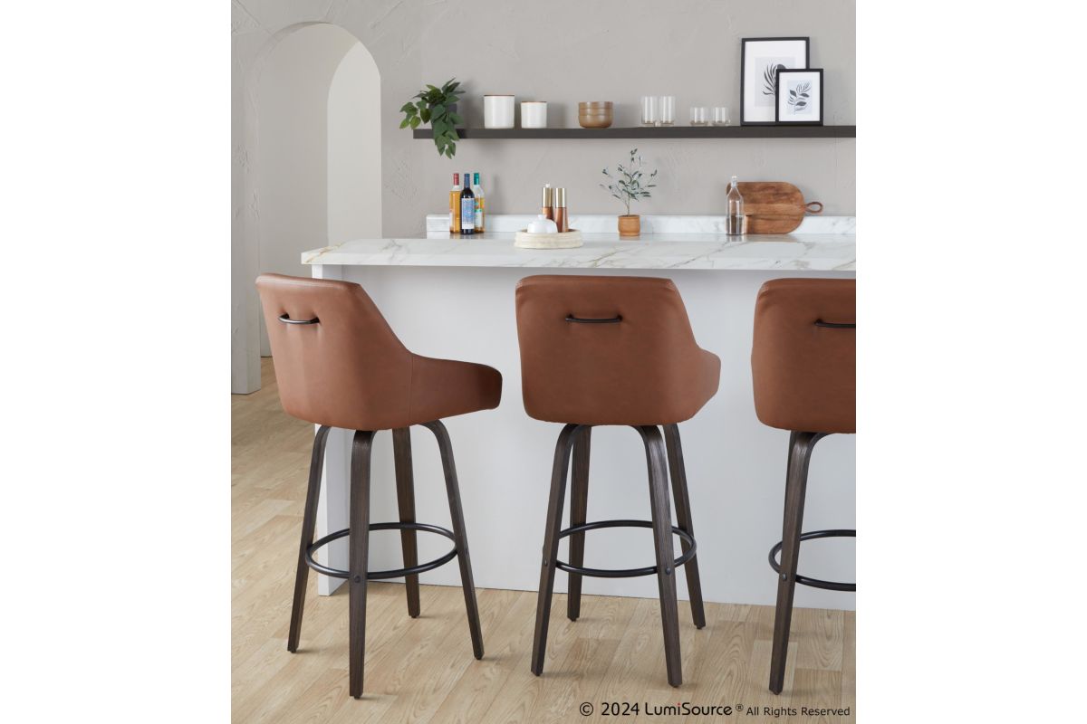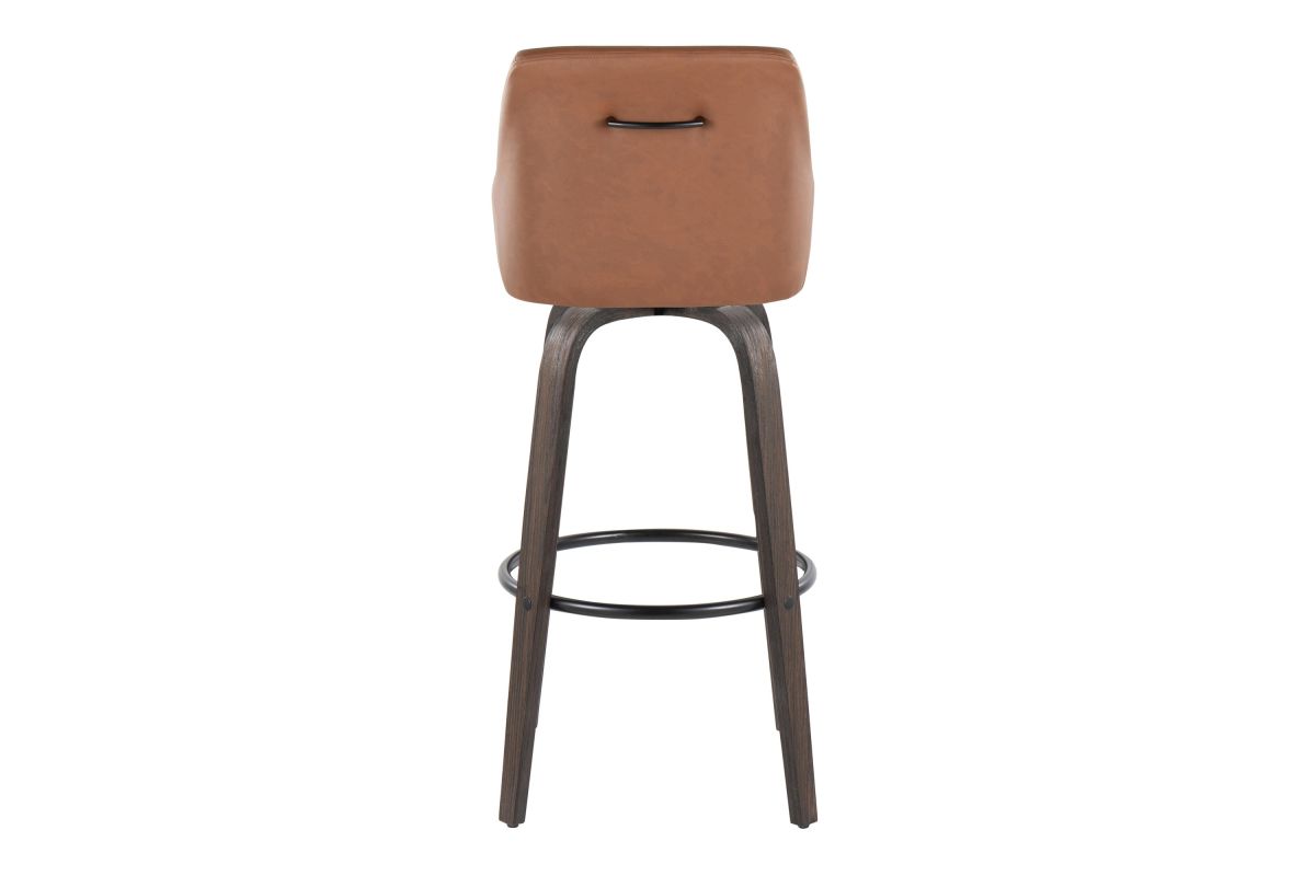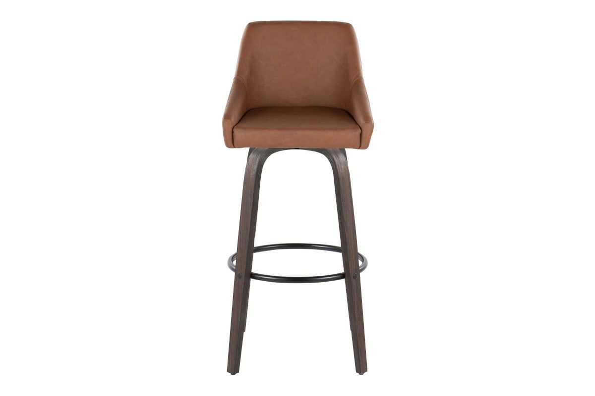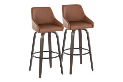 Elegant and simple, the LumiSource Hannah Fixed-Height Barstool will furnish any eating area in style. Featuring sleek bent wood legs, a comfortable padded upholstered seat, and a decorative handle adorning the seat back, the Hannah will elevate any space with its satisfying transitional design. Available in a variety of upholstery colors and finishes, choose the one that fits your space best.