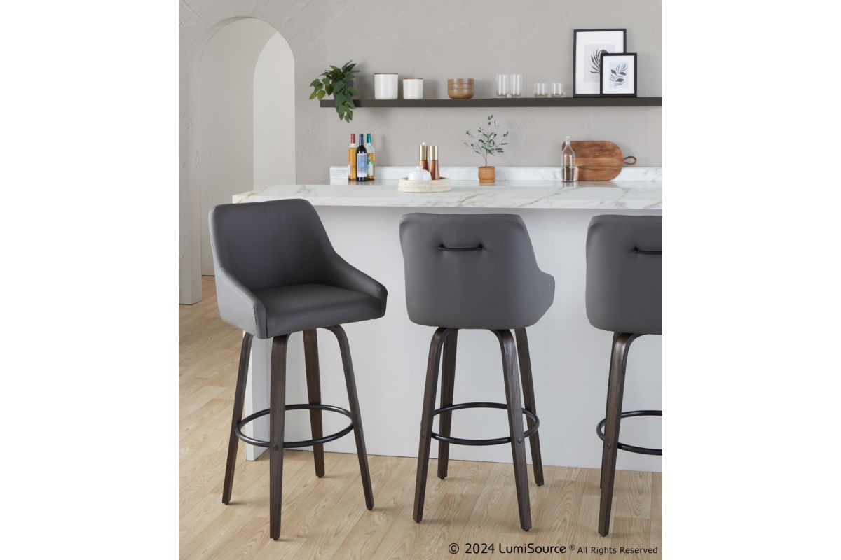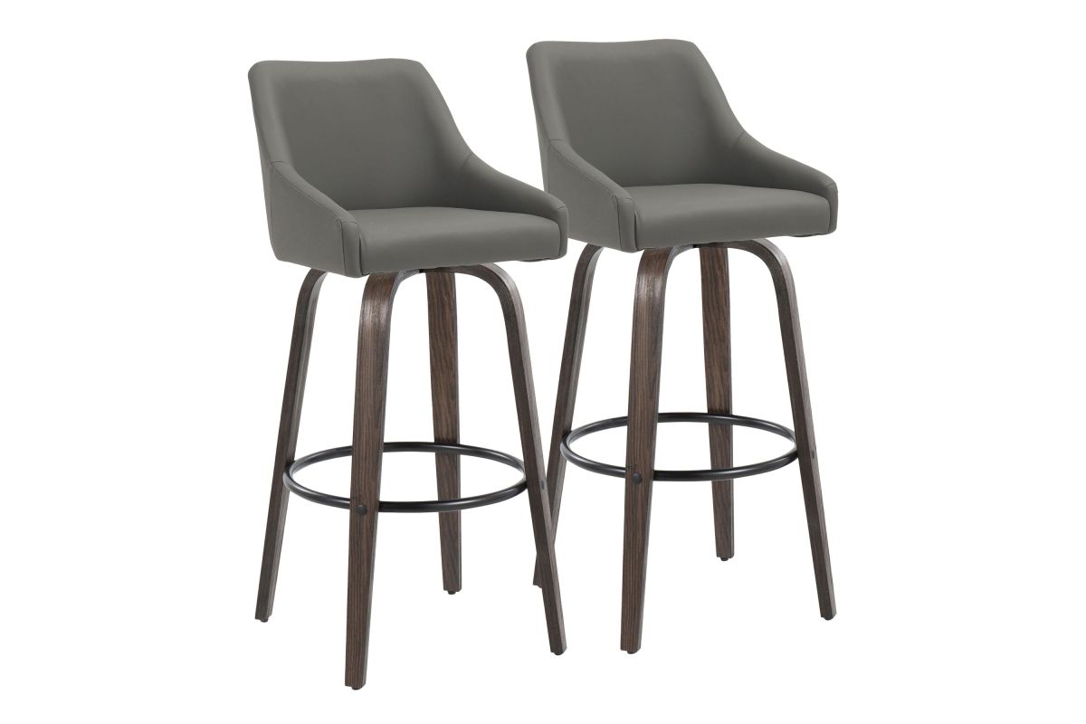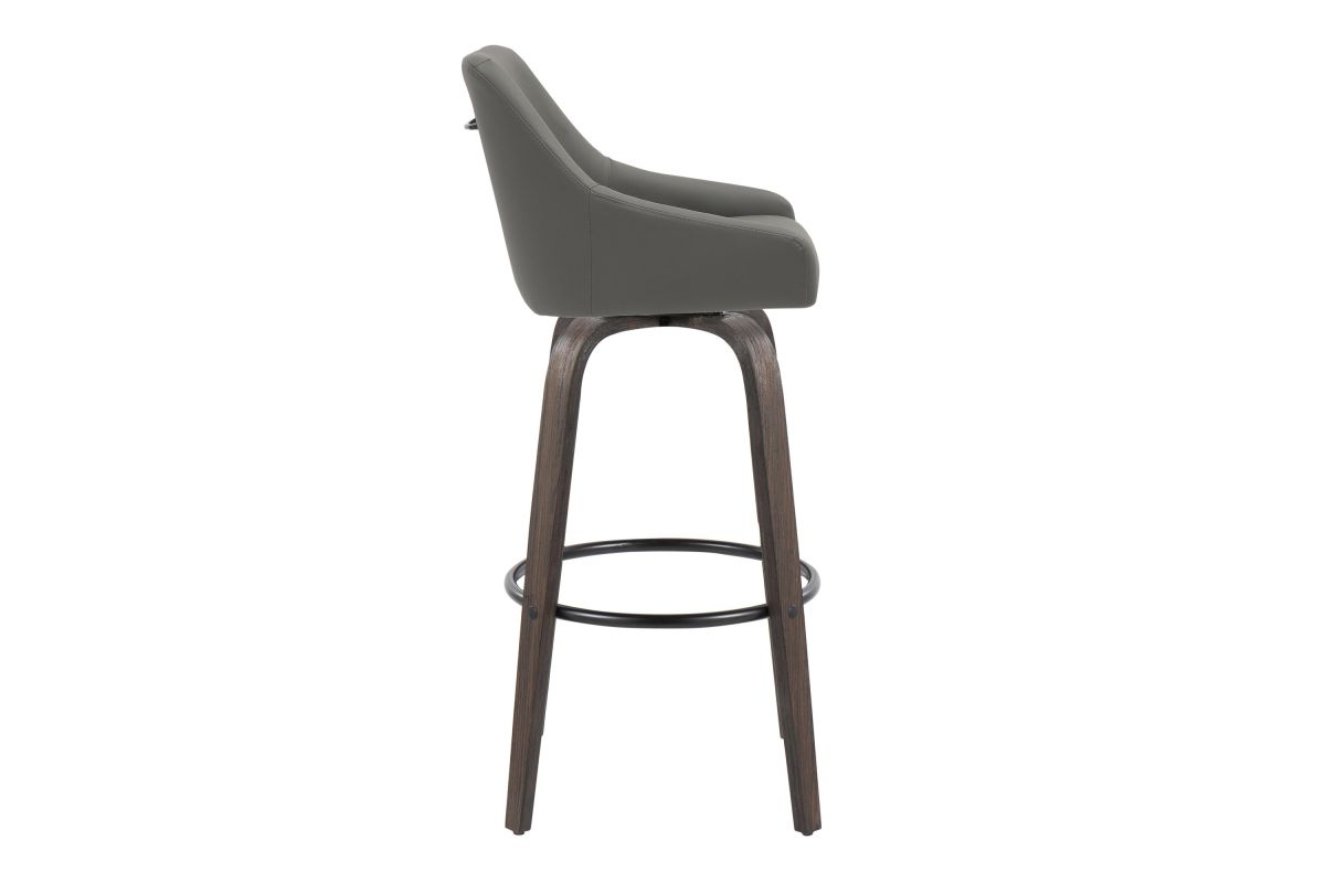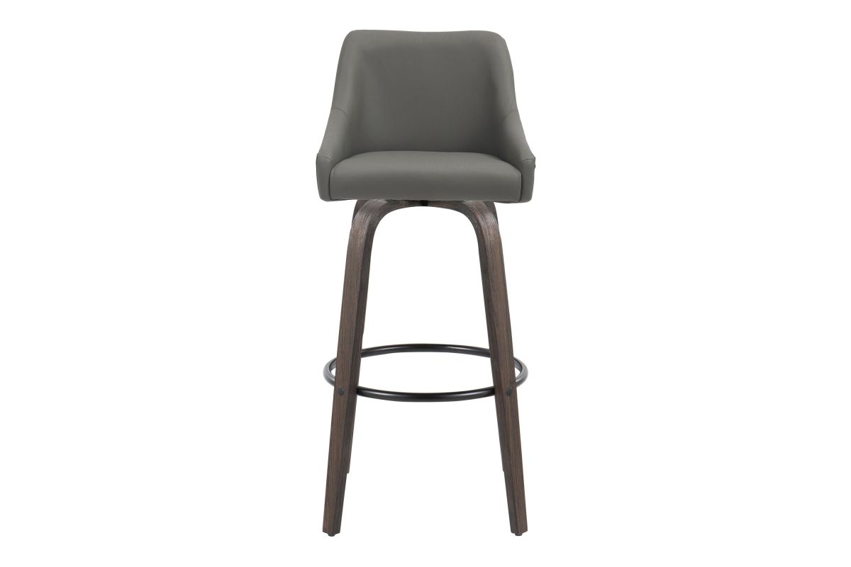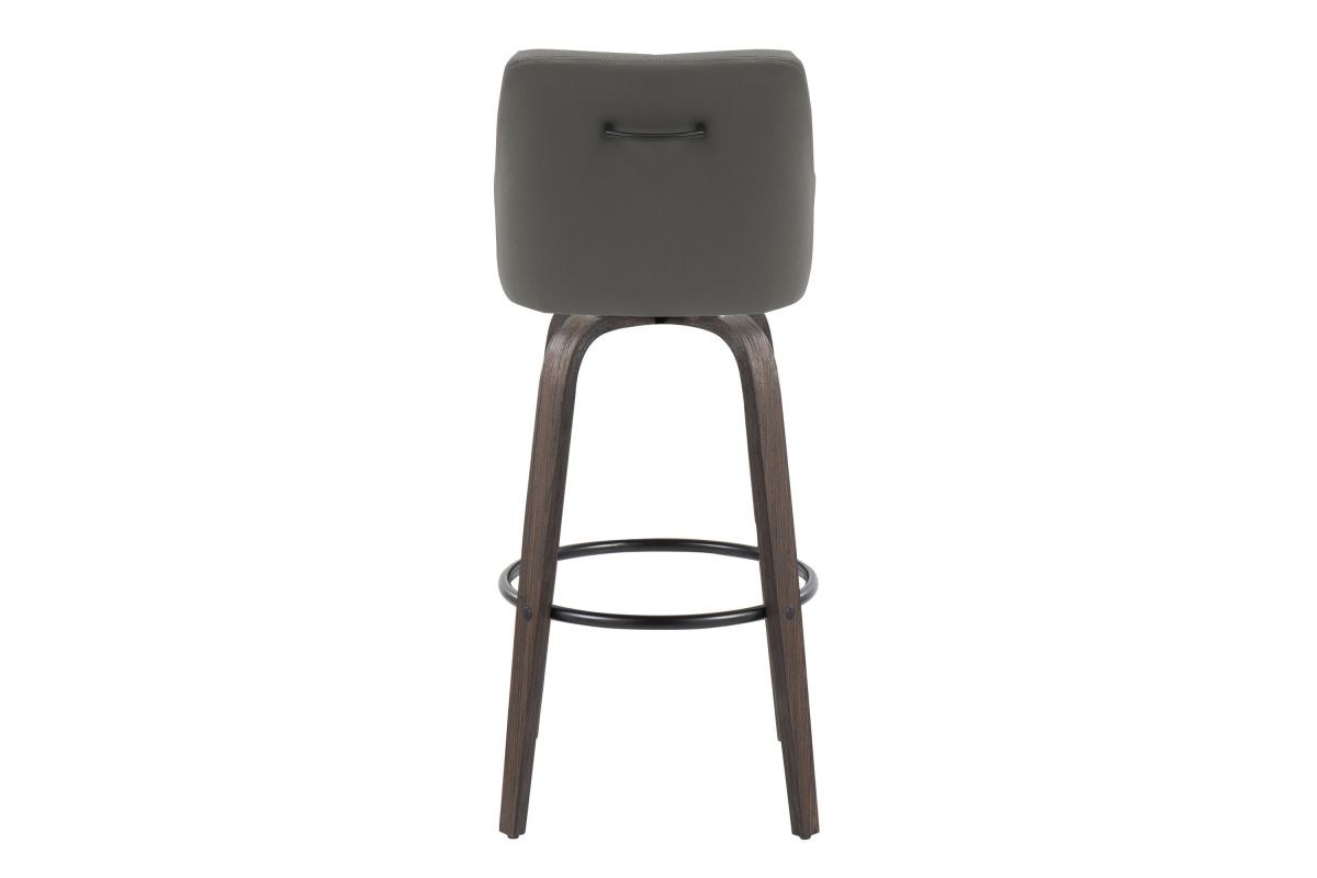 Elegant and simple, the LumiSource Hannah Fixed-Height Barstool will furnish any eating area in style. Featuring sleek bent wood legs, a comfortable padded upholstered seat, and a decorative handle adorning the seat back, the Hannah will elevate any space with its satisfying transitional design. Available in a variety of upholstery colors and finishes, choose the one that fits your space best.