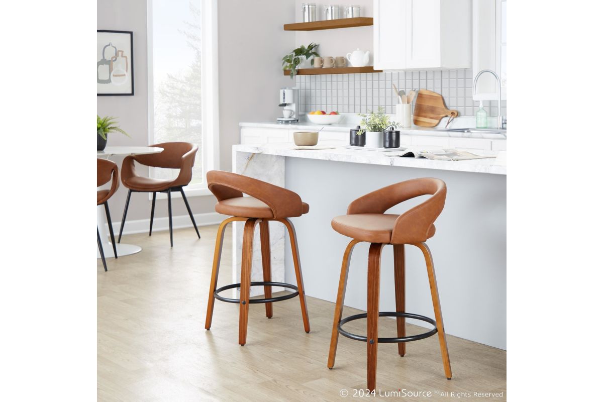 The Grotto Upholstered Fixed-Height Counter Stool by LumiSource brings a refined and versatile seating option to your kitchen. Featuring a fully upholstered seat and a low backrest, these stools offer both style and comfort. The clean-lined design of the frame complements the plush upholstery, allowing the Grotto stools to blend seamlessly into a variety of kitchen decor styles.