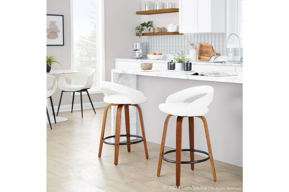The Grotto Upholstered Fixed-Height Counter Stool by LumiSource brings a refined and versatile seating option to your kitchen. Featuring a fully upholstered seat and a low backrest, these stools offer both style and comfort. The clean-lined design of the frame complements the plush upholstery, allowing the Grotto stools to blend seamlessly into a variety of kitchen decor styles.