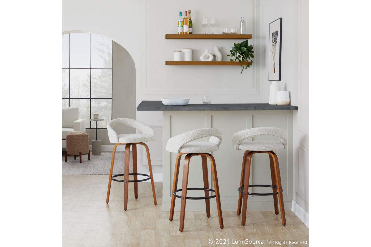 The Grotto Upholstered Fixed-Height Barstool by LumiSource brings a refined and versatile seating option to your kitchen. Featuring a fully upholstered seat and a low backrest, these stools offer both style and comfort. The clean-lined design of the frame complements the plush upholstery, allowing the Grotto stools to blend seamlessly into a variety of kitchen or bar decor styles.