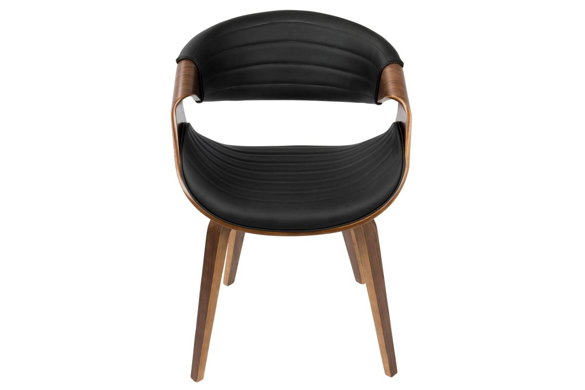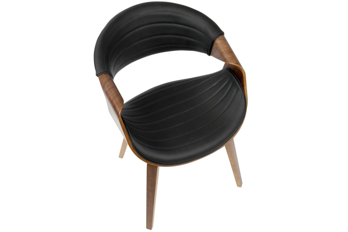 A curvaceous dose of Mid-Century style, the unique design and silhouette of the Symphony Dining Chair will look great at any table! Also great for use as a stylish accent chair. Upholstered in a sleek faux leather accented with vertical tufting and bent wood legs, the Symphony comes in a variety of colors to fit in any room.