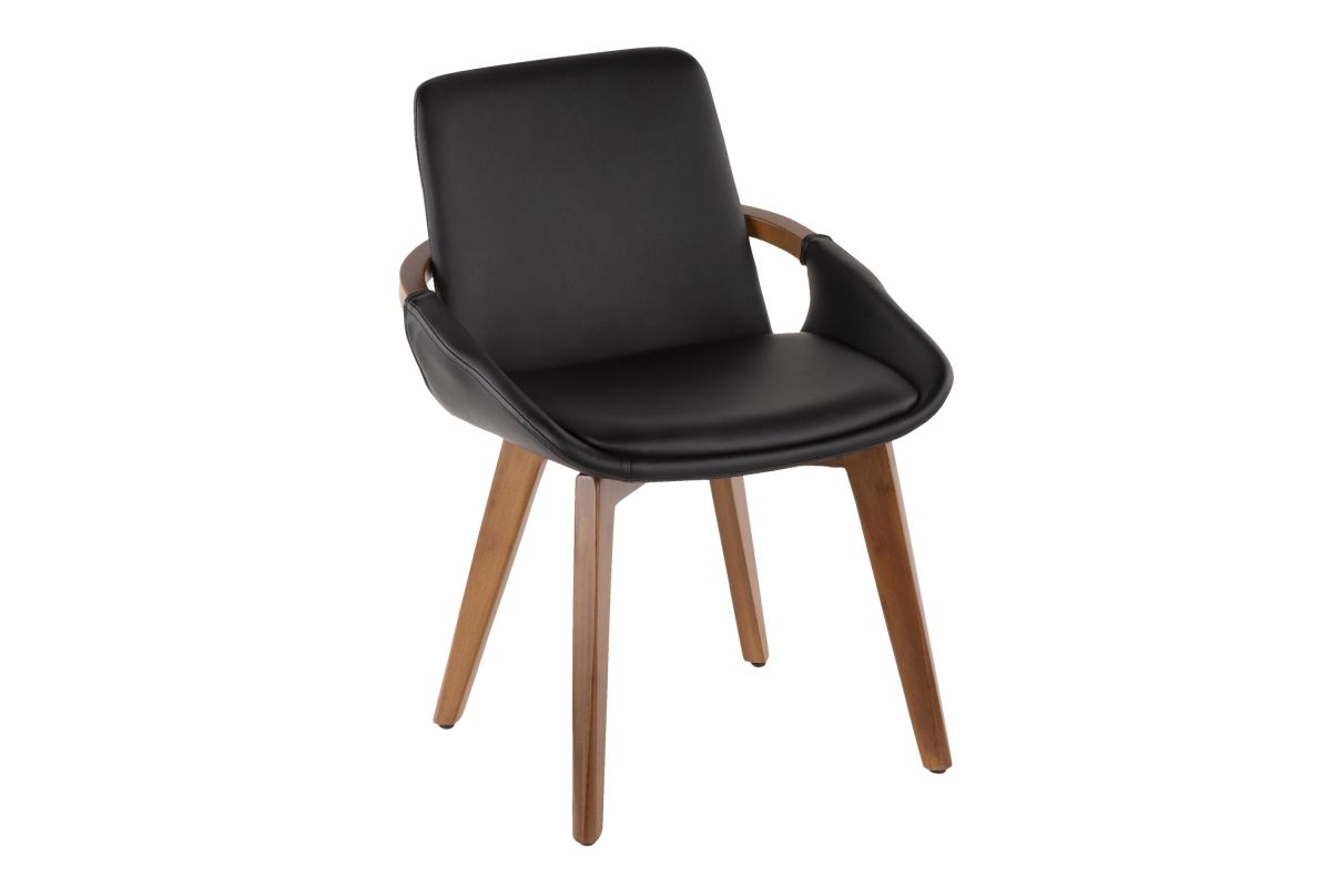 Mid-Century inspired, the Cosmo Chair by LumiSource combines style and comfort! A faux leather seat is accented by stylish walnut wood armrest and legs. Available in a variety of color combinations, choose the one that fits your space the best.