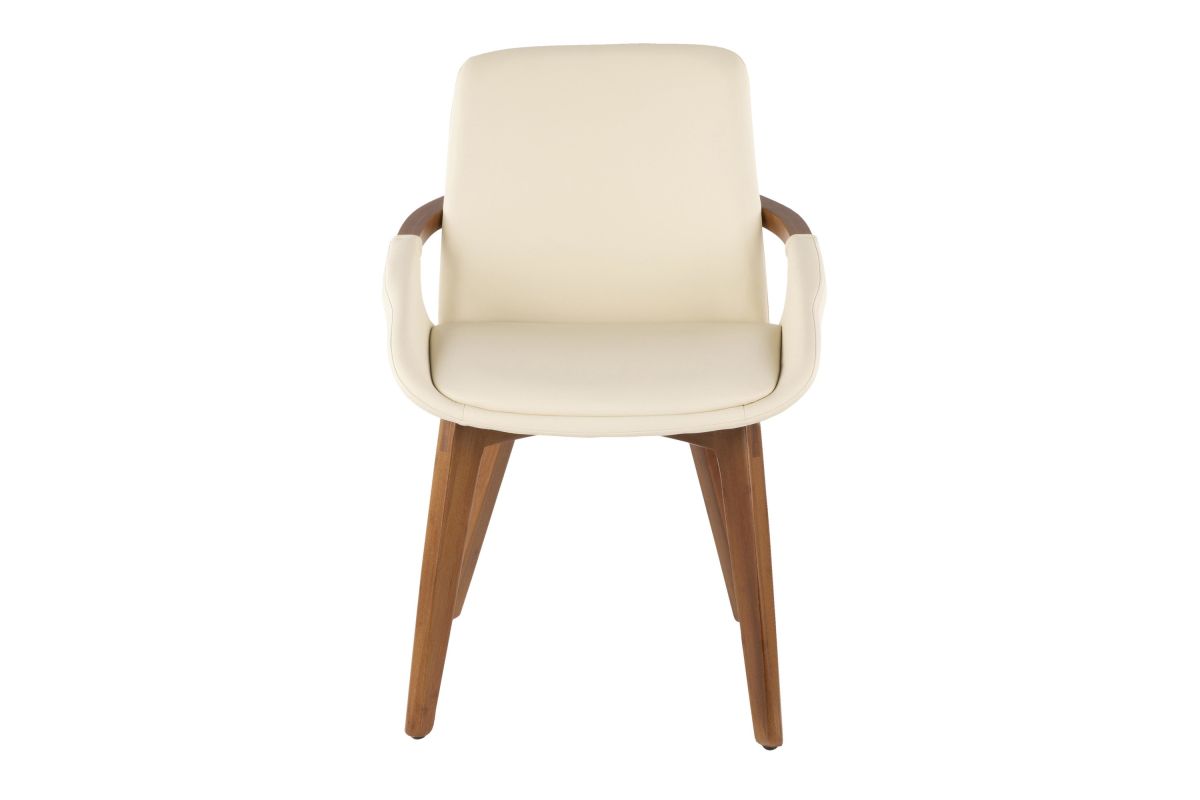 Mid-Century inspired, the Cosmo Chair by LumiSource combines style and comfort! A faux leather seat is accented by stylish walnut wood armrest and legs. Available in a variety of color combinations, choose the one that fits your space the best.