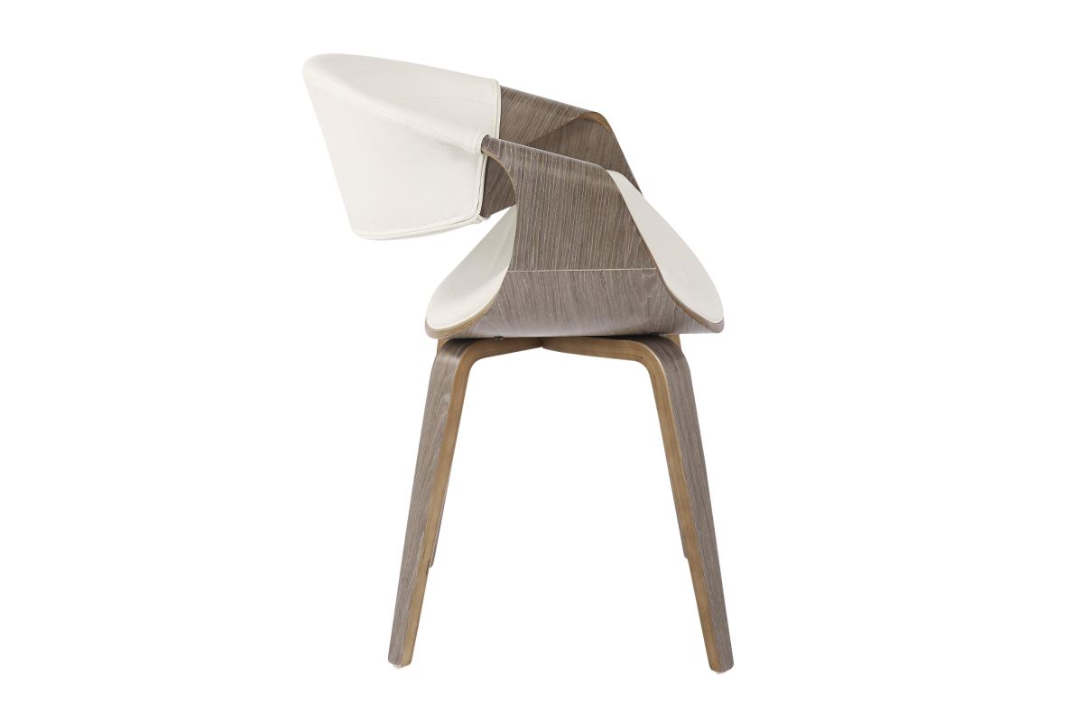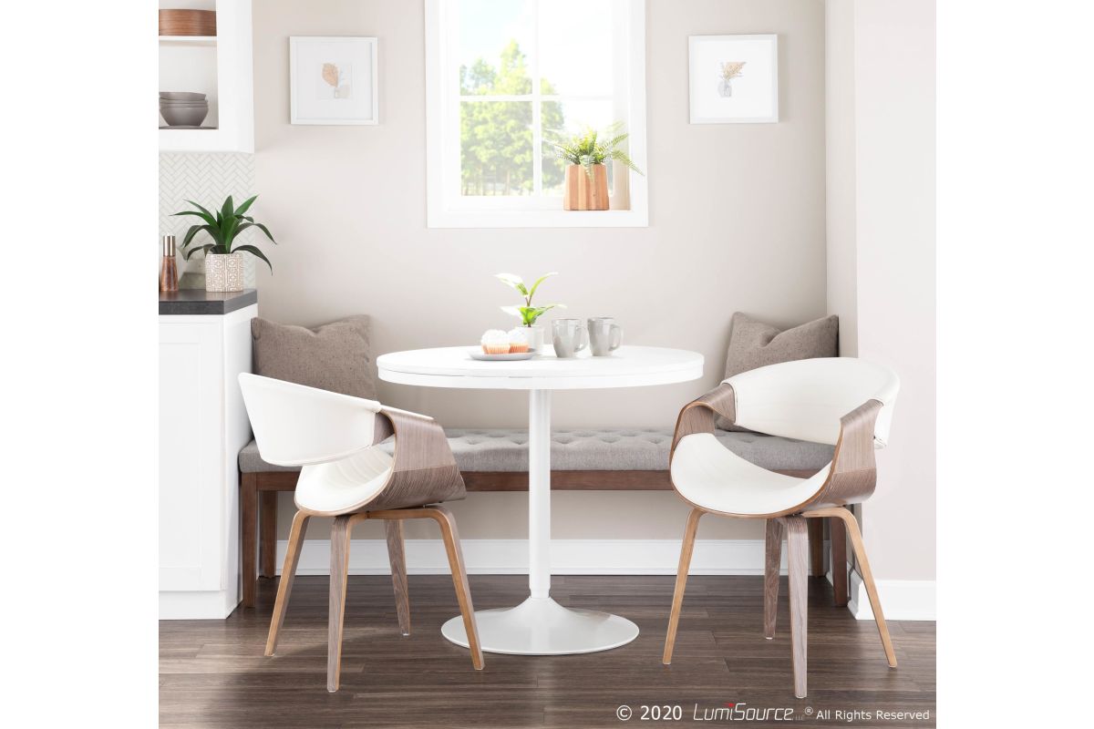 A curvaceous dose of Mid-Century style, the unique design and silhouette of the Symphony Dining Chair will look great at any table! Also great for use as a stylish accent chair. Upholstered in a sleek faux leather accented with vertical tufting and bent wood legs, the Symphony comes in a variety of colors to fit in any room.