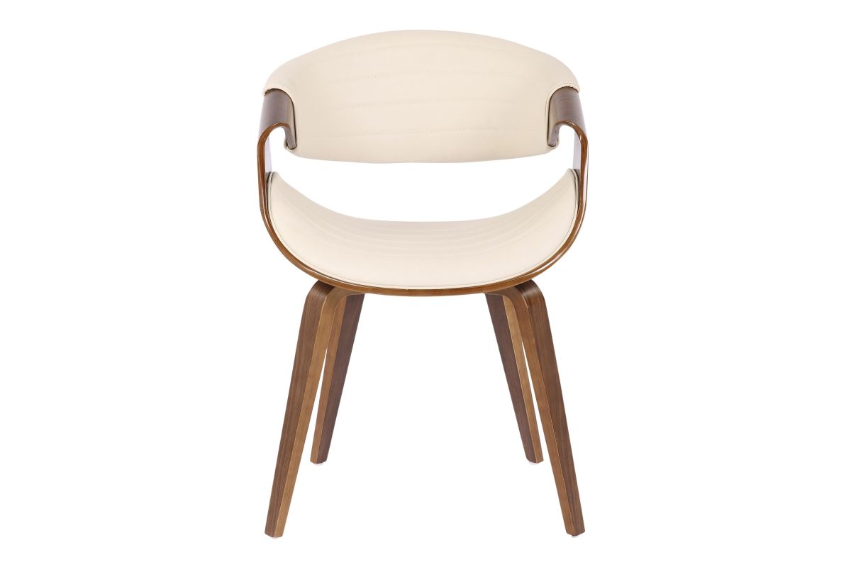 A curvaceous dose of Mid-Century style, the unique design and silhouette of the Symphony Dining Chair will look great at any table! Also great for use as a stylish accent chair. Upholstered in a sleek faux leather accented with vertical tufting and bent wood legs, the Symphony comes in a variety of colors to fit in any room.