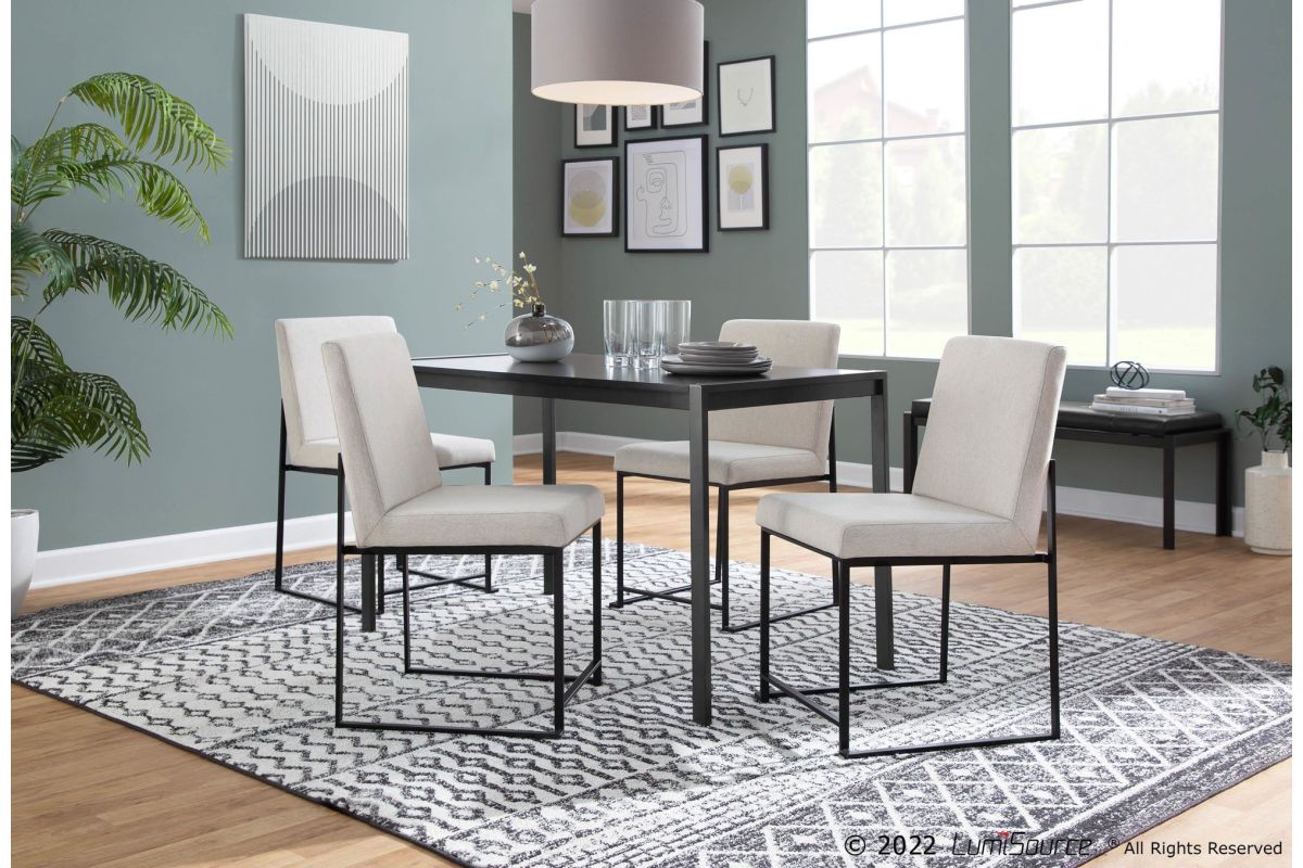 Modern elegance at its finest, the Fuji High Back Dining Chair by LumiSource features an extra-wide (and extra comfortable) upholstered seat, high padded backrest, and stylish metal frame. The perfect dining chair, the Fuji is multi-functional and can be used as extra seating in a sitting room or as a stylish office chair. Available in stainless steel, gold, or black metal frame and a variety of sleek upholstery colors.
