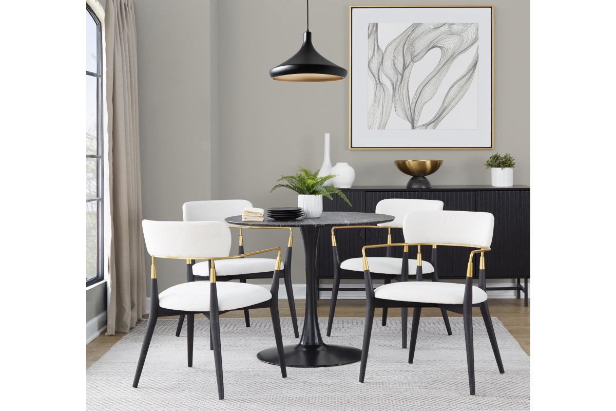 The perfect combination of contemporary and glam, the Savannah Chair by LumiSource is a must-have. With a mix of black wood, stylish fabric upholstery, and gold accents the Savannah Chair creates a fashion-forward style like no other. Sold in sets of two the Savannah is perfect for any dining area or extra seating.